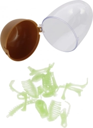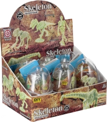 Componentele mici din plastic dur sunt modelate realist în oase – de la craniu, coloană vertebrală până la membre. După încărcare la lumină, scheletul strălucește spectaculos în întuneric, adăugând o notă de mister și stimulând imaginația copiilor. Perfect ca dar, pentru colecție sau ca decorațiune ingenioasă în camera copilului.