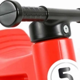 Unghiul limitat al rotației previne întoarcerea excesivă a ghidonului, iar manșoanele lărgite protejează mâinile. Configurația stabilă cu trei roți oferă încredere începătorilor.
