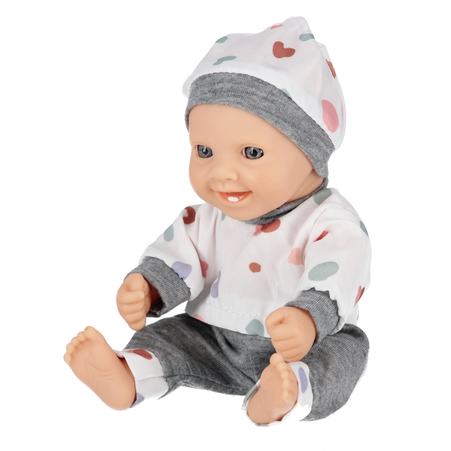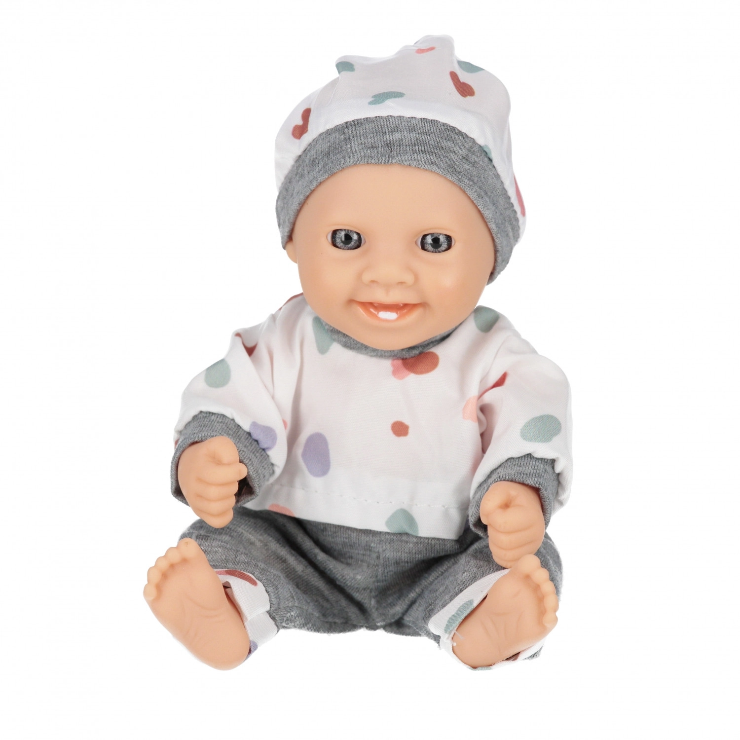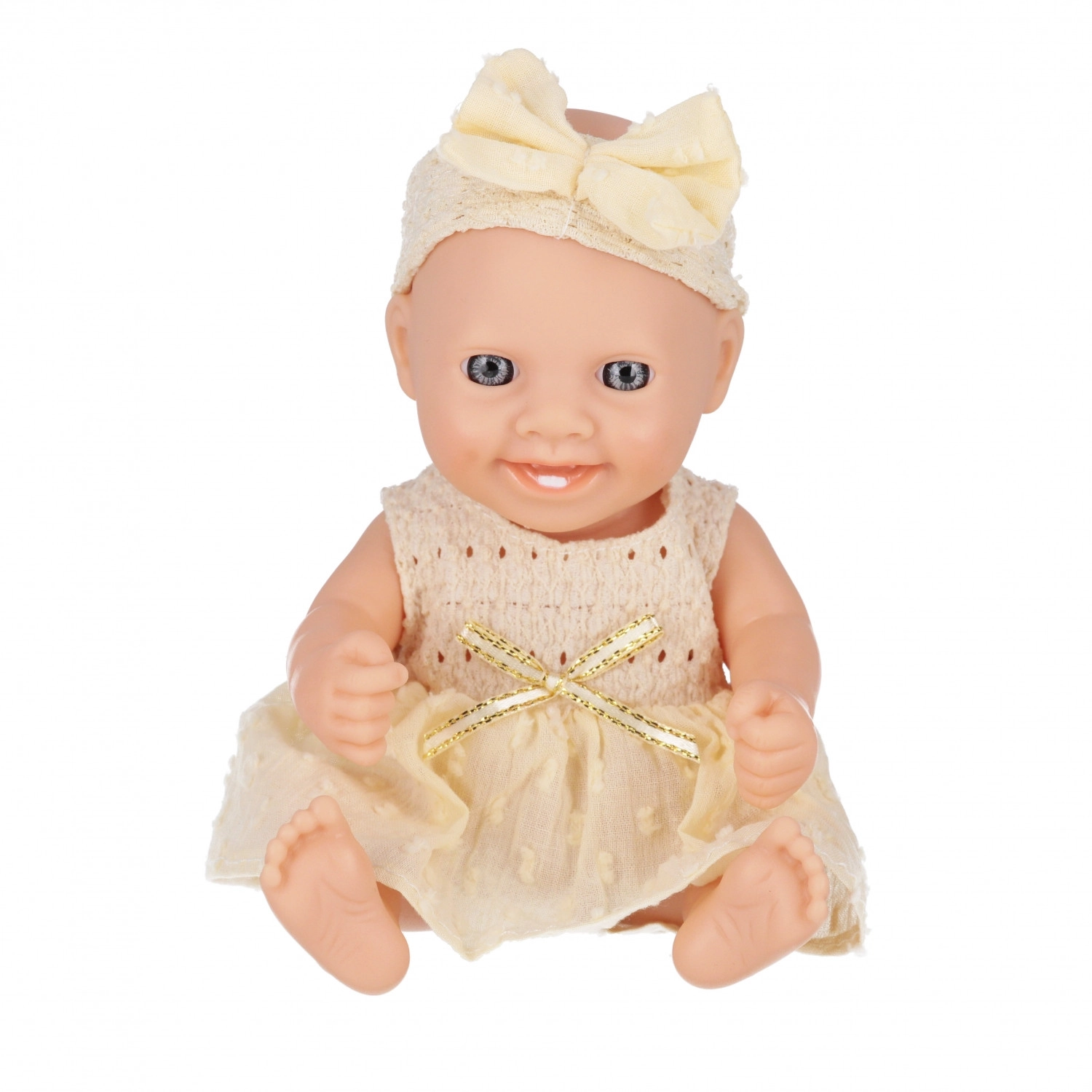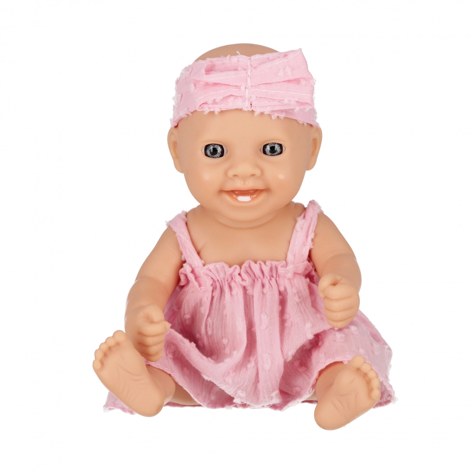 Această păpușă bebeluș adorabilă, cu înălțimea de 20 cm, va bucura orice copil care iubește jocul de familie. Oferă hăinuțe moi, membre mobile și este disponibilă în șase variante de culori. Ideală pentru dezvoltarea empatiei, motricității fine și a imaginației copiilor de la 3 ani. Prețul este pentru 1 bucată.