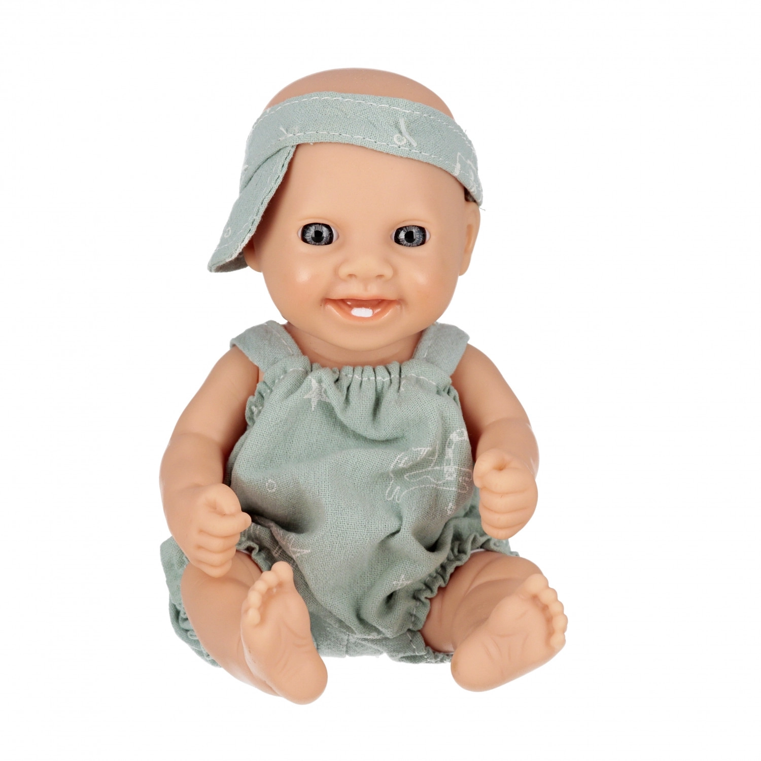 Această păpușă bebeluș drăgălașă este un companion grozav pentru joaca de zi cu zi. Datorită dimensiunii compacte de 20 cm, se ține ușor în mână, se îmbracă fără efort și este ideală și pentru călătorii. Hăinuța textilă moale și capul, mâinile și picioarele modelate realist susțin jocul natural de îngrijire.