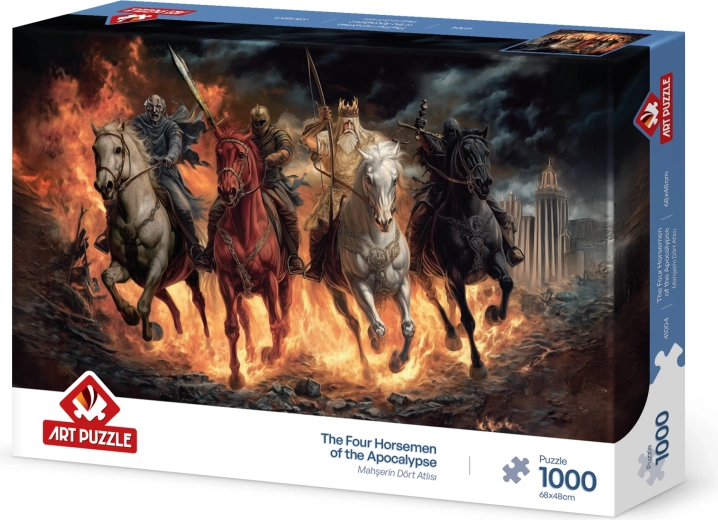 Descoperiți o provocare care va încânta orice pasionat de puzzle-uri. Motivul celor patru călăreți ai Apocalipsei impresionează prin detalii evidente și culori contrastante, făcând asamblarea captivantă și vizual atrăgătoare. Datorită celor 1000 de piese decupate cu atenție, vă veți bucura de relaxare de durată și antrenament al concentrării.