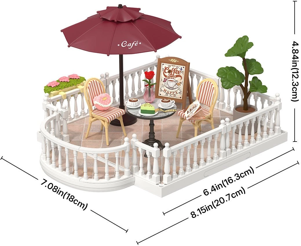 Setul se atașează simplu la camerele tale miniaturale și extinde instant scena cu un balcon sau o cafenea stilată.