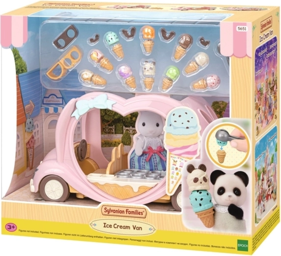 Mașina veselă de înghețată SYLVANIAN FAMILIES este accesoriul perfect pentru universul micilor colecționari. Copiii vor îndrăgi detaliile realiste, oferta variată de înghețate și drăguțele decorațiuni din ciocolată. Scaunul șoferului rotativ și tejgheaua practică permit o transformare rapidă într-un vehicul obișnuit, astfel încât joaca nu se demodează niciodată.