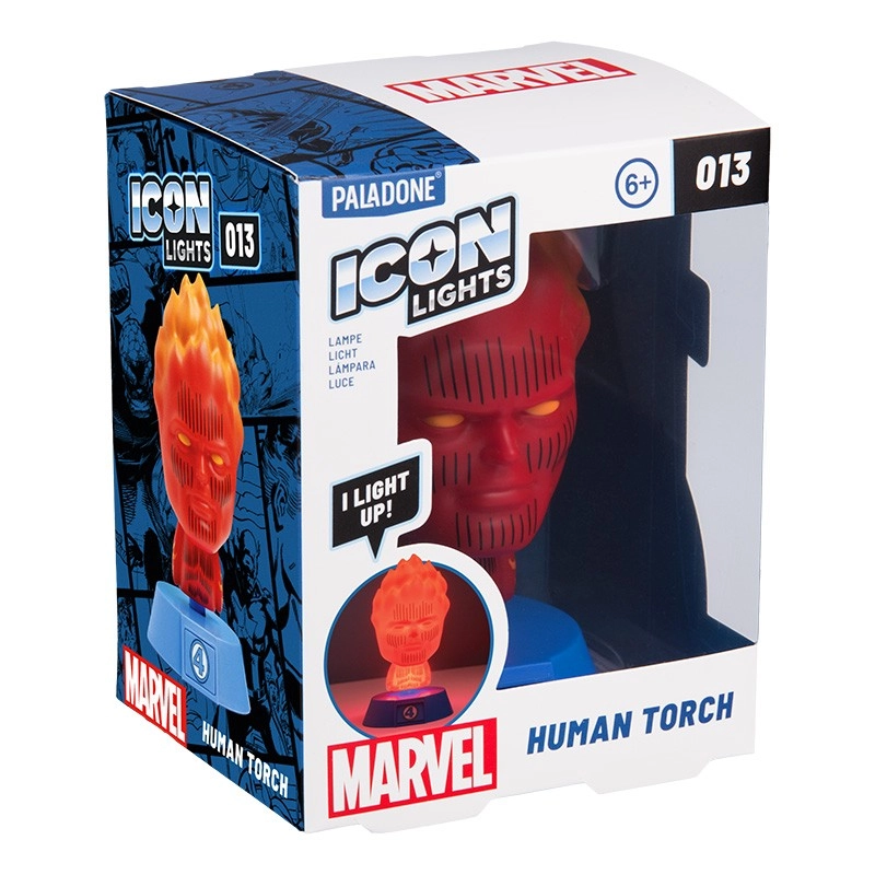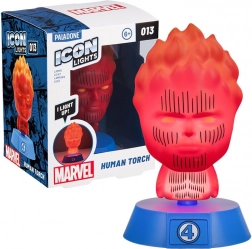 Lampă de noapte stilată cu motivul FANTASTICII PATRU – Human Torch, care oferă lumină ambientală delicată pentru o atmosferă relaxantă. Potrivită perfect pentru noptieră, etajeră sau birou și ideală ca cadou pentru fanii benzilor desenate. Alimentare cu 2× baterii AAA (nu sunt incluse în pachet).