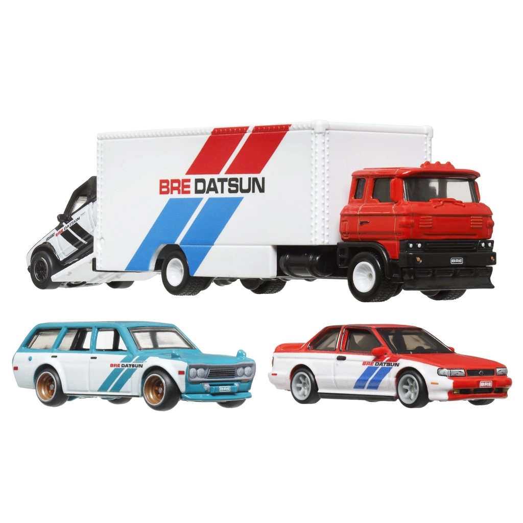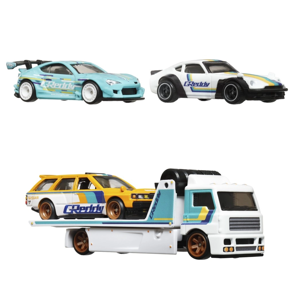 Setul include un camion de echipă stilat, care completează atmosfera de curse și permite o prezentare spectaculoasă a modelelor.