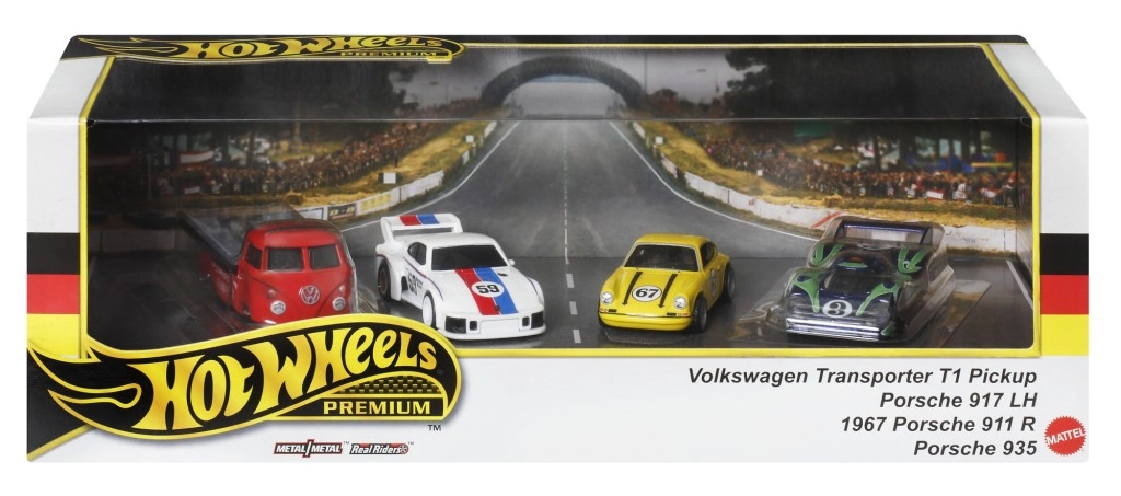 Fiecare model este la scara 1:64, are vopsea de calitate, detalii realiste și roți cu rulare ușoară. Setul este livrat într-un ambalaj pentru cadou cu fereastră transparentă, astfel încât conținutul iese în evidență – o idee perfectă de cadou pentru fanii motorsportului și ai mărcii HOT WHEELS.