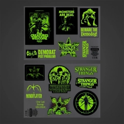 Descoperă atmosfera din Hawkins cu aceste autocolante luminoase Stranger Things. Setul conține 14 bucăți de autocolante care, după expunere la lumină, strălucesc în întuneric și oferă camerelor, laptopurilor sau accesoriilor un efect neon stilat.