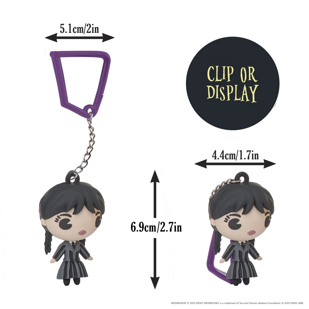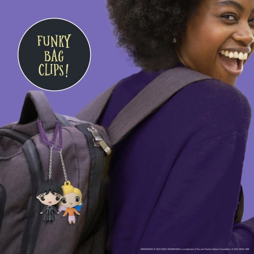 Descoperă colecția distractivă de clipsuri de colecție inspirate de serialul WEDNESDAY. Fiecare clips are forma unui personaj îndrăgit și este perfect pentru rucsac, penar sau chei. Cadoul ideal pentru fanii care vor să aibă personajul preferat mereu la îndemână.