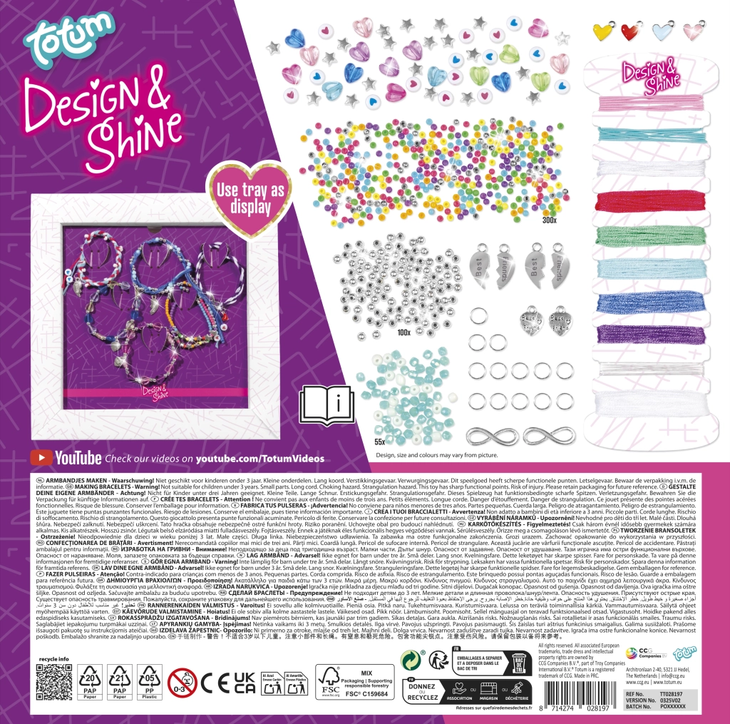 Descoperă bucuria creației manuale și proiectează brățări ale prieteniei originale care îți exprimă perfect stilul. Setul TOTUM Design & Shine oferă o selecție bogată de mărgele, charmuri și șnururi, datorită cărora poți crea cu ușurință mai multe bijuterii unice. Ideal pentru după-amieze creative, petreceri pentru copii și activități în familie.
