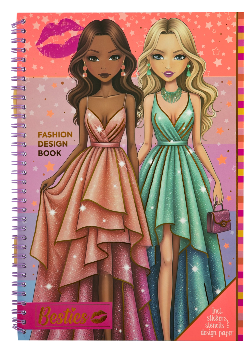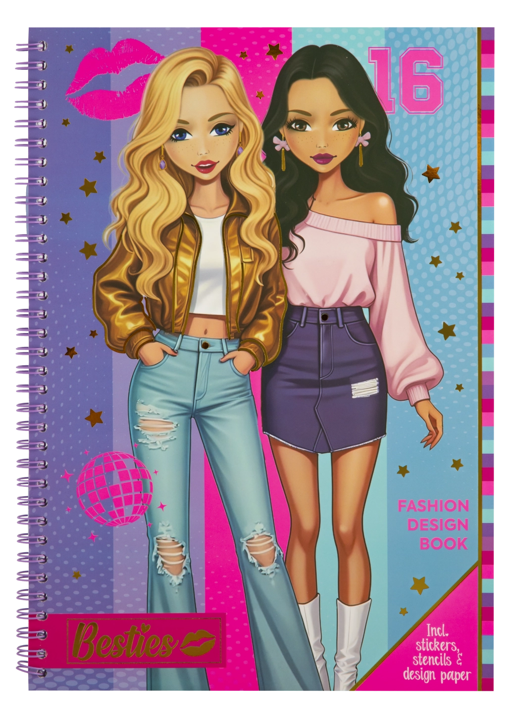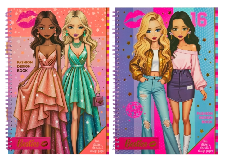 Descoperă lumea stilului cu caietul creativ Besties – alegerea ideală pentru micile creatoare de modă. Copiii pot proiecta propriile colecții de modă, combina haine și accesorii și crea schițe originale cu ajutorul modelelor, șabloanelor și autocolantelor pretipărite.