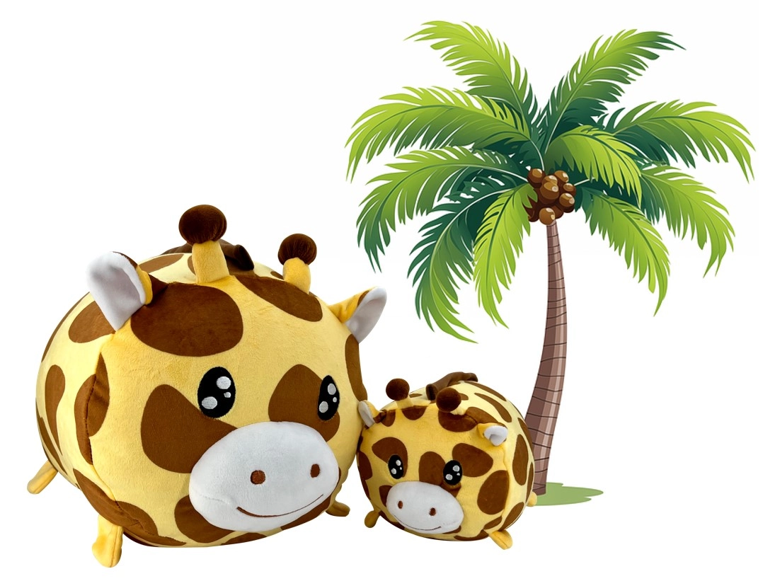 Setul de două girafe de pluș brodate aduce îmbrățișări pufoase și o notă drăgălașă de decor în camera copilului. Forma rotunjită, plușul fin și detaliile cusute în siguranță asigură alint confortabil chiar și pentru cei mai micuți, în timp ce copiii mai mari vor aprecia girafa mare ca pernuță pentru mașină sau călătorii.