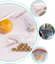 Clapeta autoadezivă permite închidere rapidă fără unelte; adezivul aderă sigur, dar permite și redeschidere și resigilare. Datorită certificării pentru contact cu alimentele, punguțele sunt ideale pentru biscuiți, dulciuri sau produse de panificație.