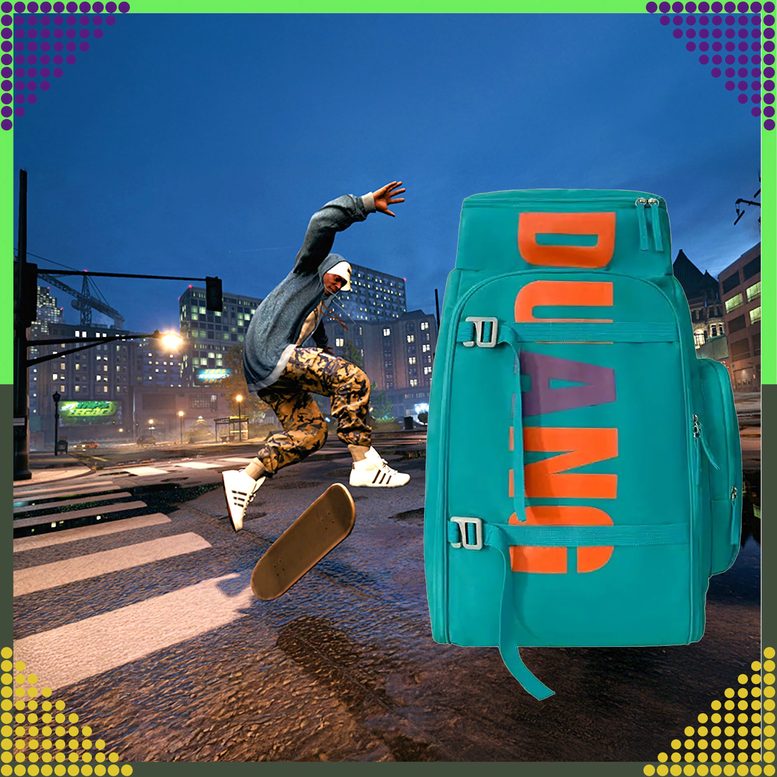 Rucsac spațios și rezistent pentru tinere skateeri și skateboarderi cu o capacitate de 55 lconstrucție solidă, buzunare practice și confort pentru fiecare zi. Ideal pentru școală, excursii și pentru mers pe skateboard.