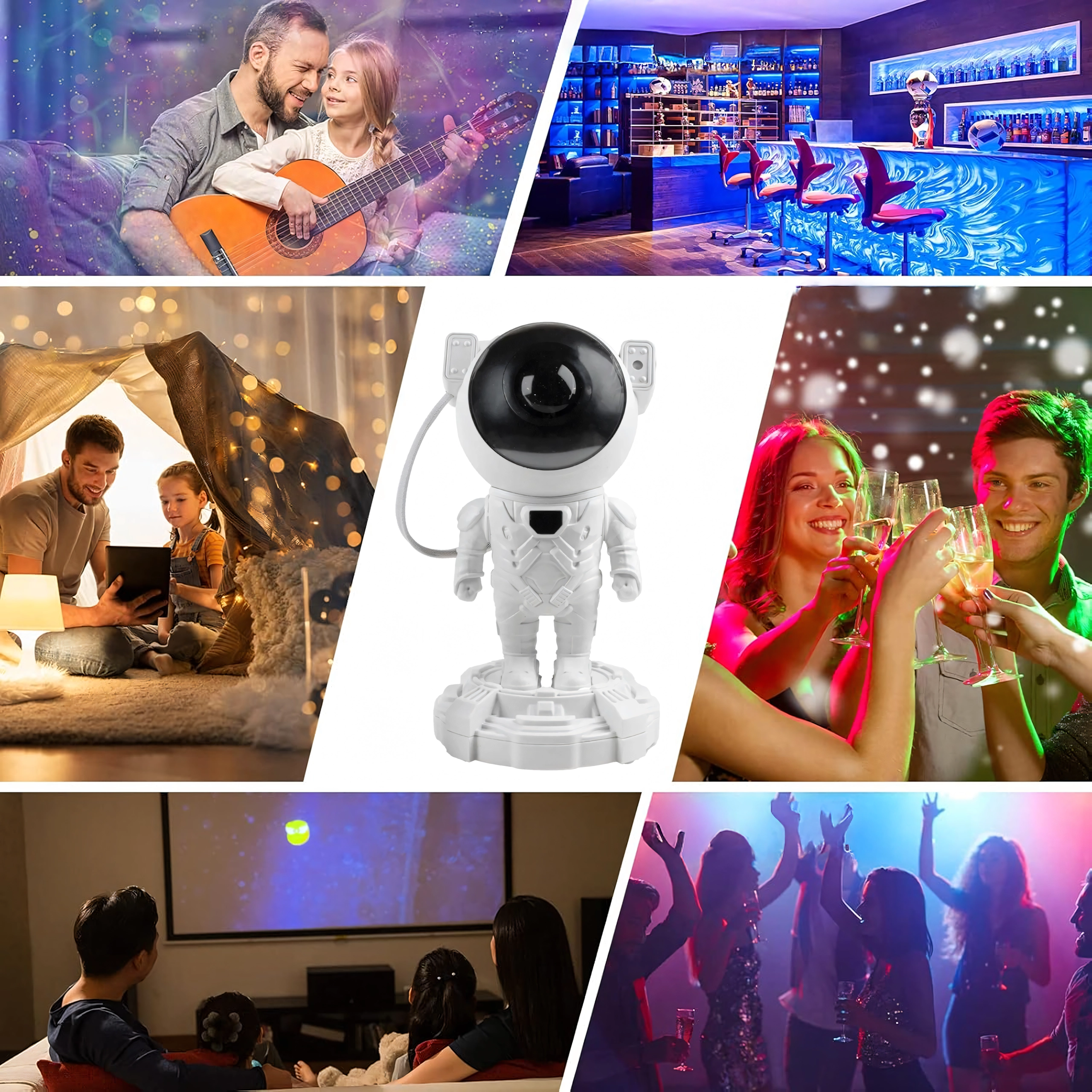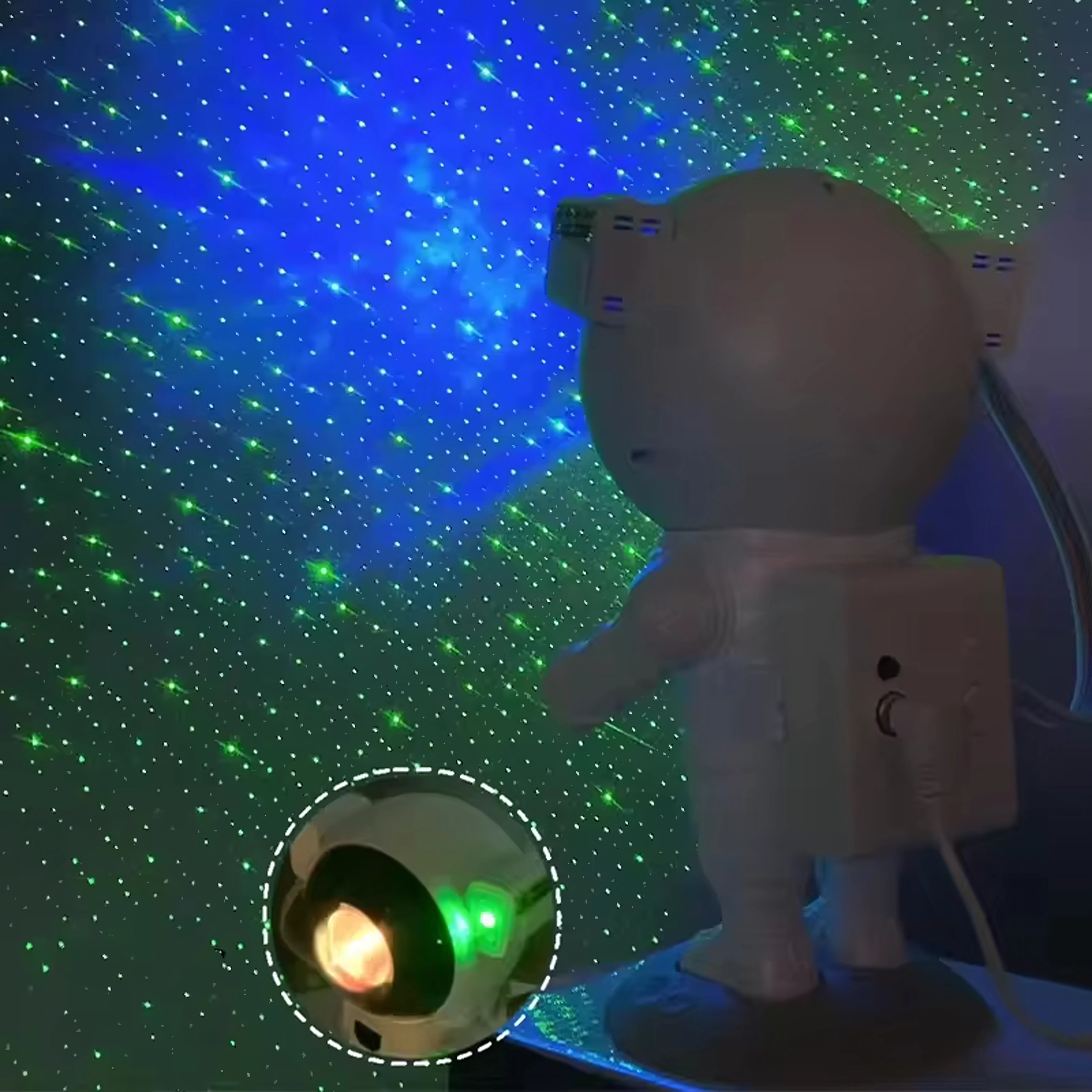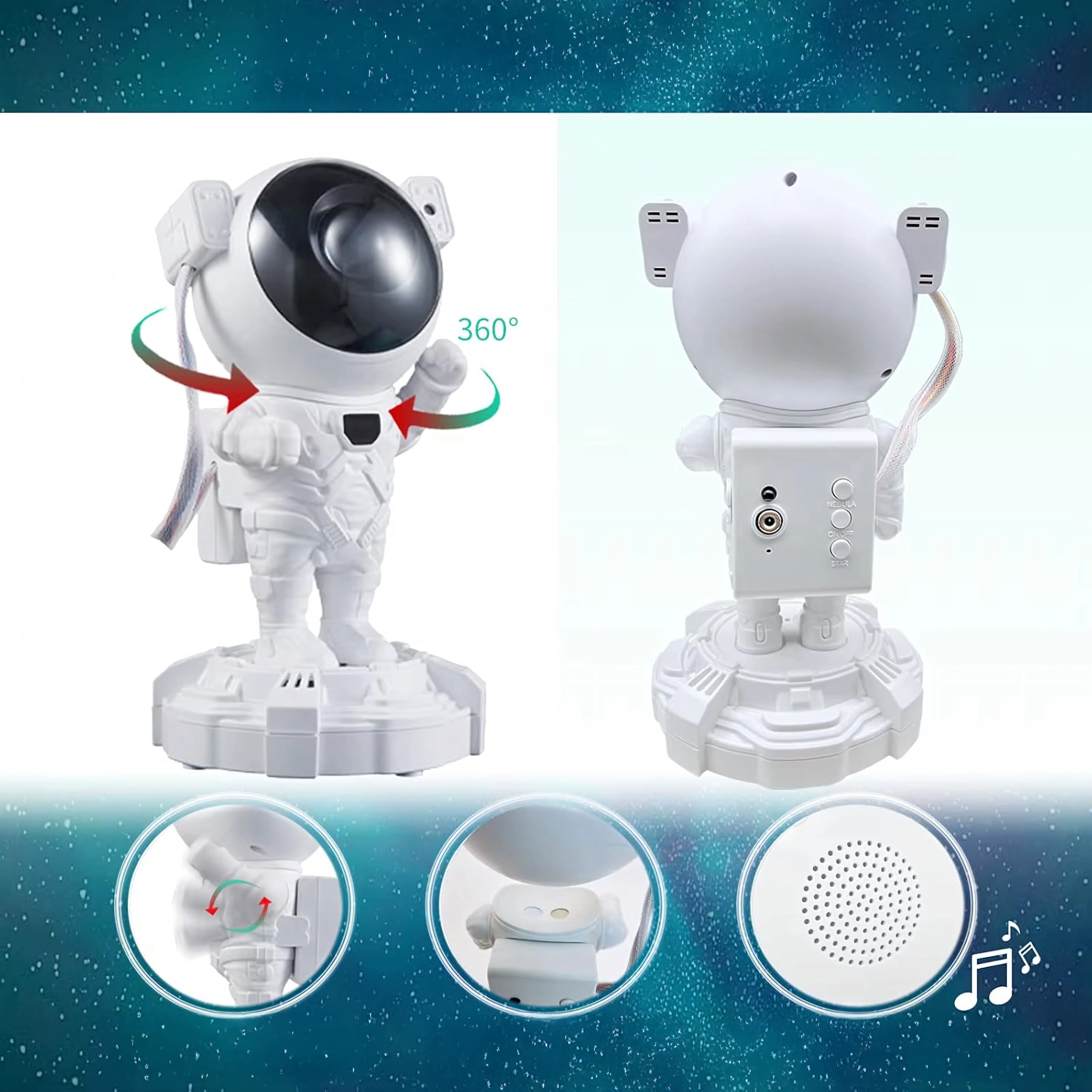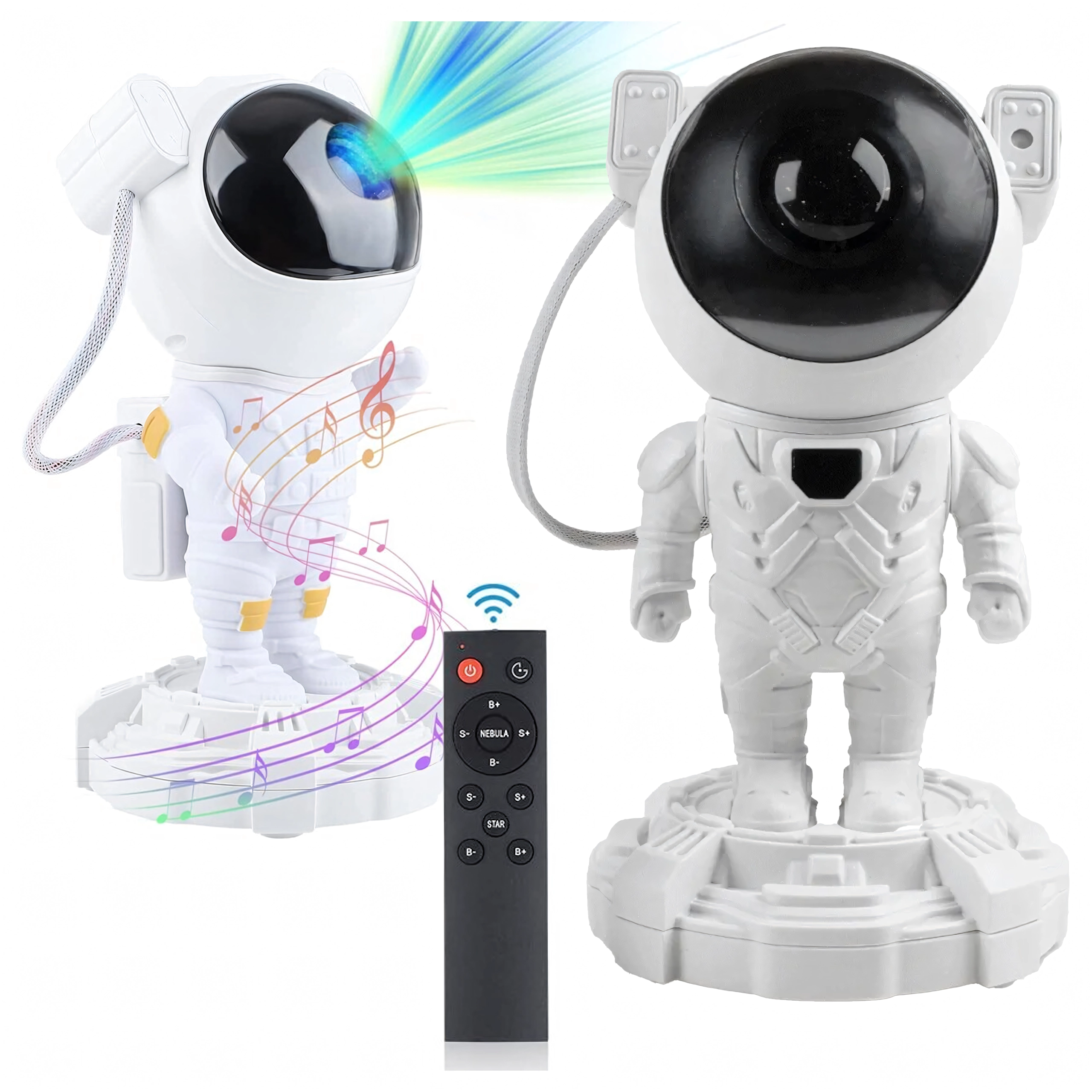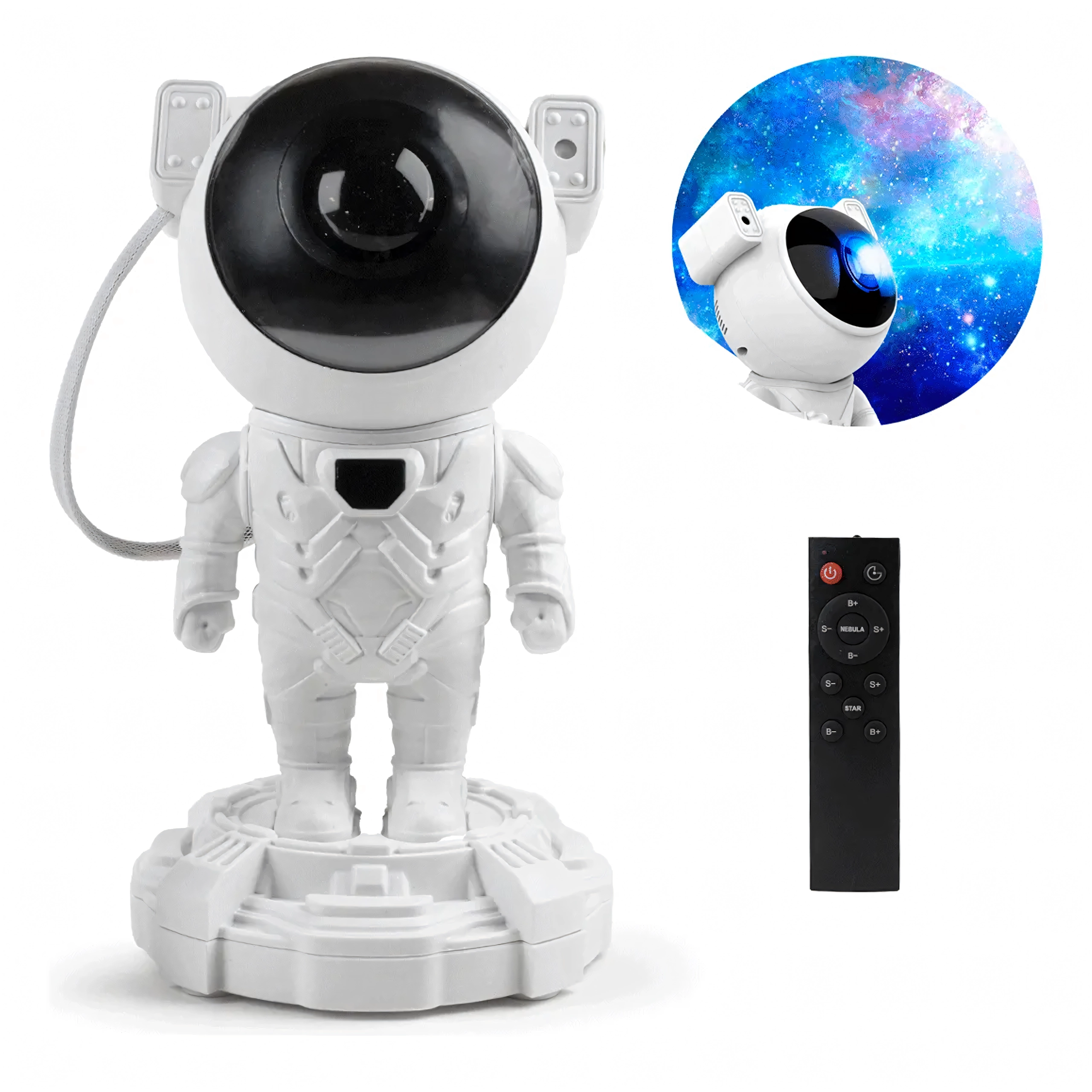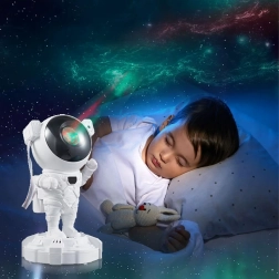 Proiectorul de stele Astronaut transformă orice cameră de copii într-o galaxie magică. Oferă 8 moduri de proiecție, reglare lină a luminozității, efecte de nebuloase și stele și cap rotativ pentru direcționarea precisă a luminii. Telecomanda ușurează controlul, iar certificările CE și RoHS asigură utilizarea în siguranță.