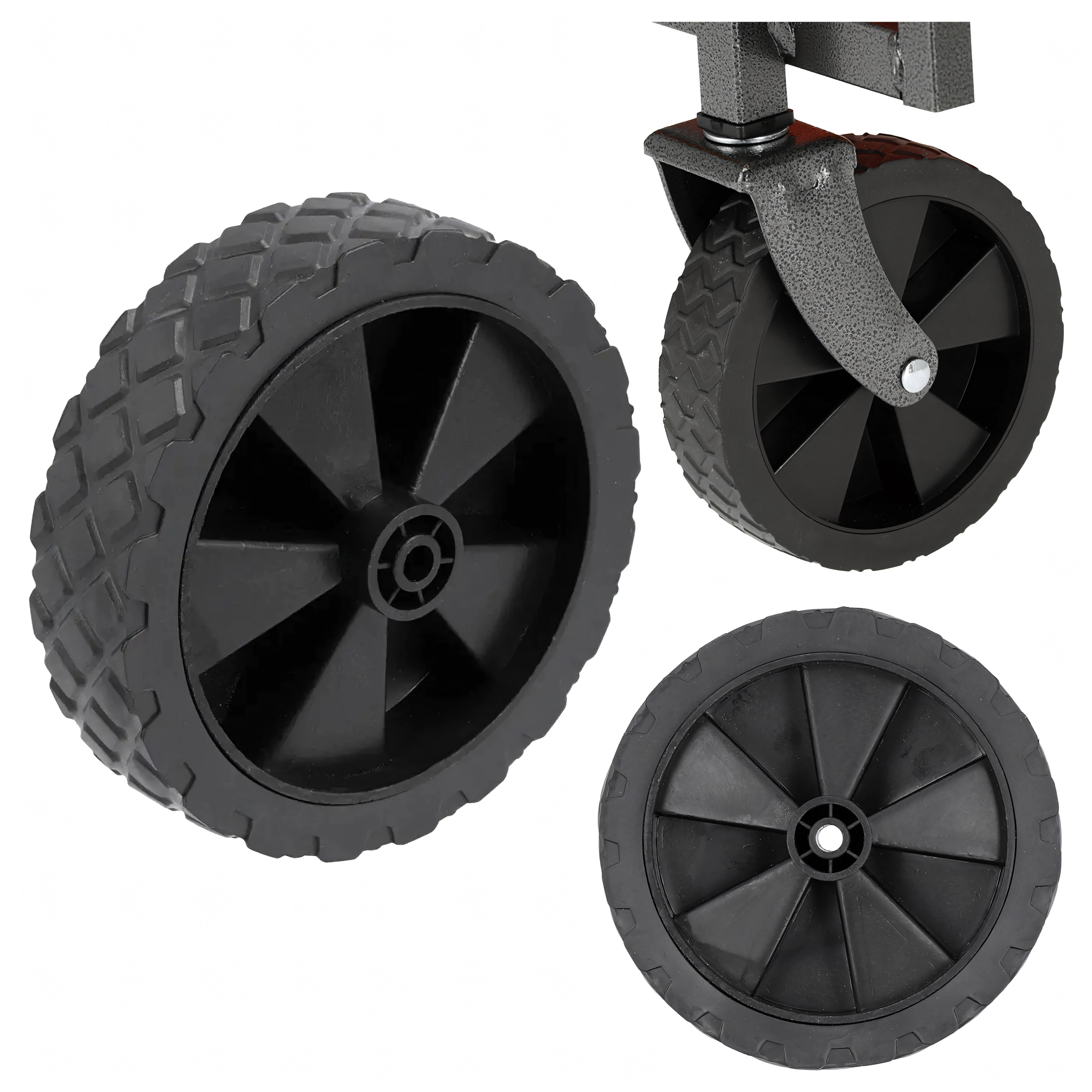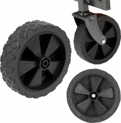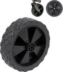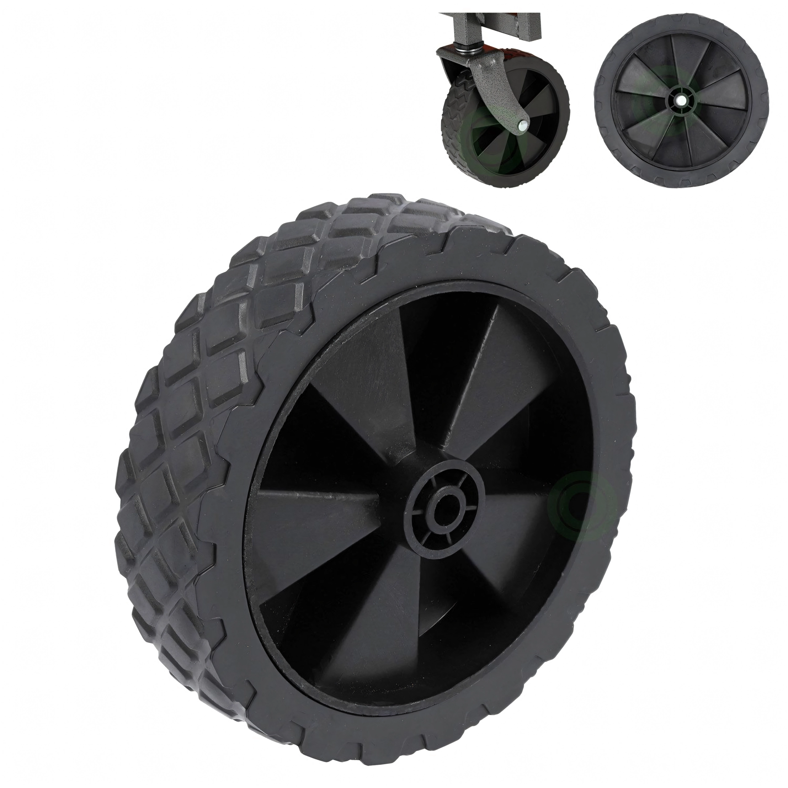 Roata de schimb fiabilă, cu bandă de rulare robustă, oferă o priză sigură și o mișcare lină pe diverse suprafețe – de la pavaj la alei de grădină. Datorită construcției ușoare, dar rezistente, cu butuc cu spițe, roata se montează ușor pe ax și oferă stabilitate la transportul încărcăturilor.