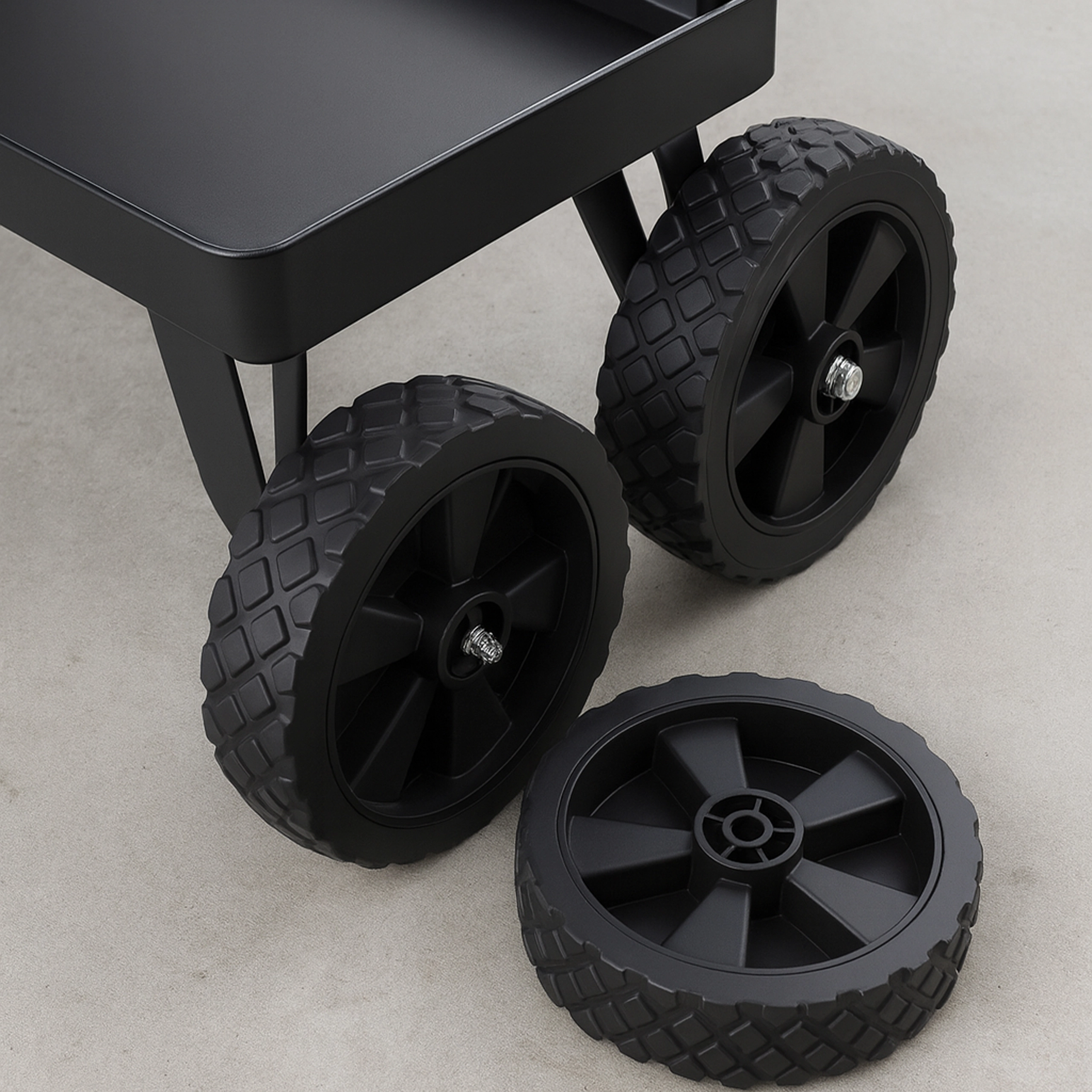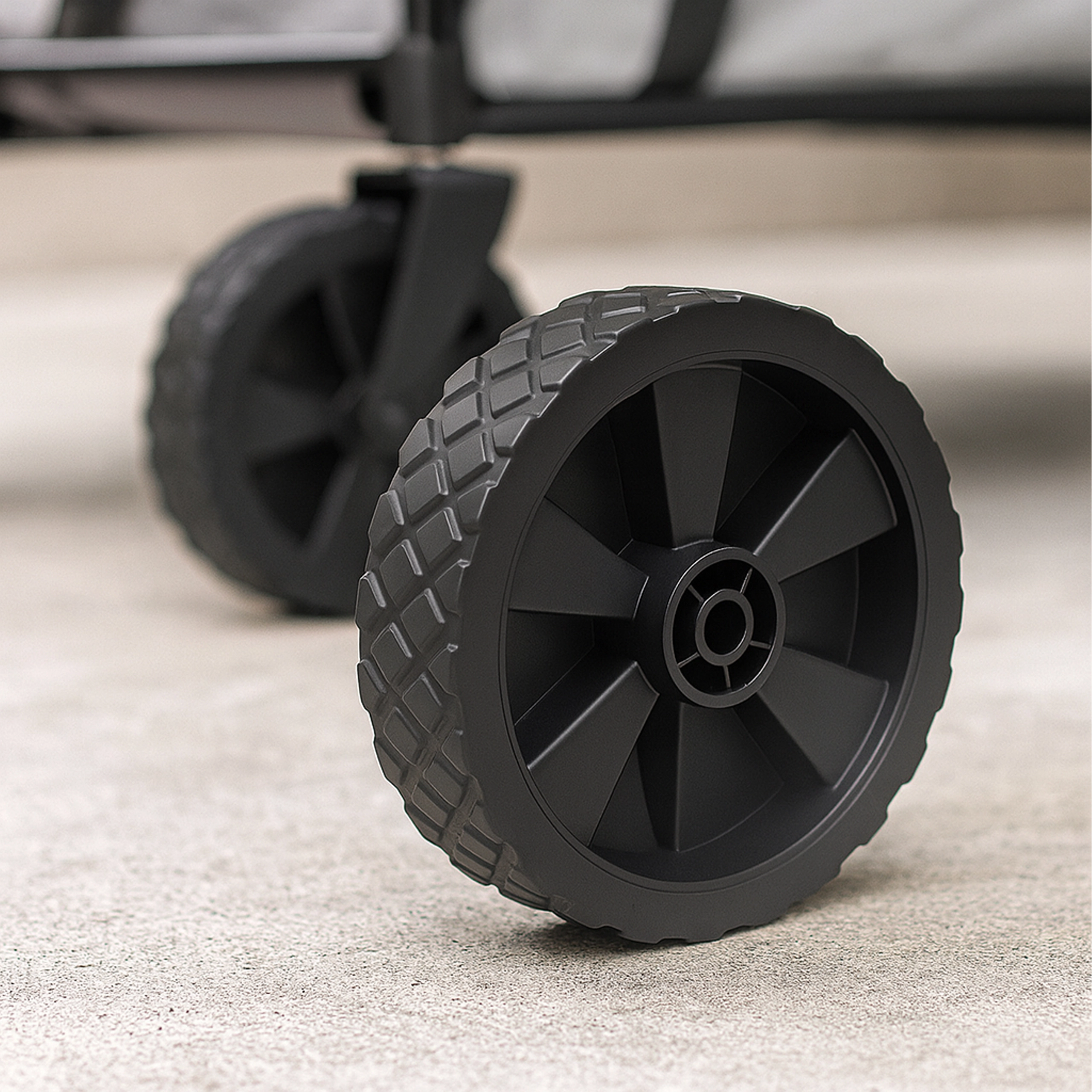 Modelul tip diamant, proeminent, asigură stabilitate și o rulare lină chiar și pe suprafețe mai aspre, ideal pentru grădină și curte.