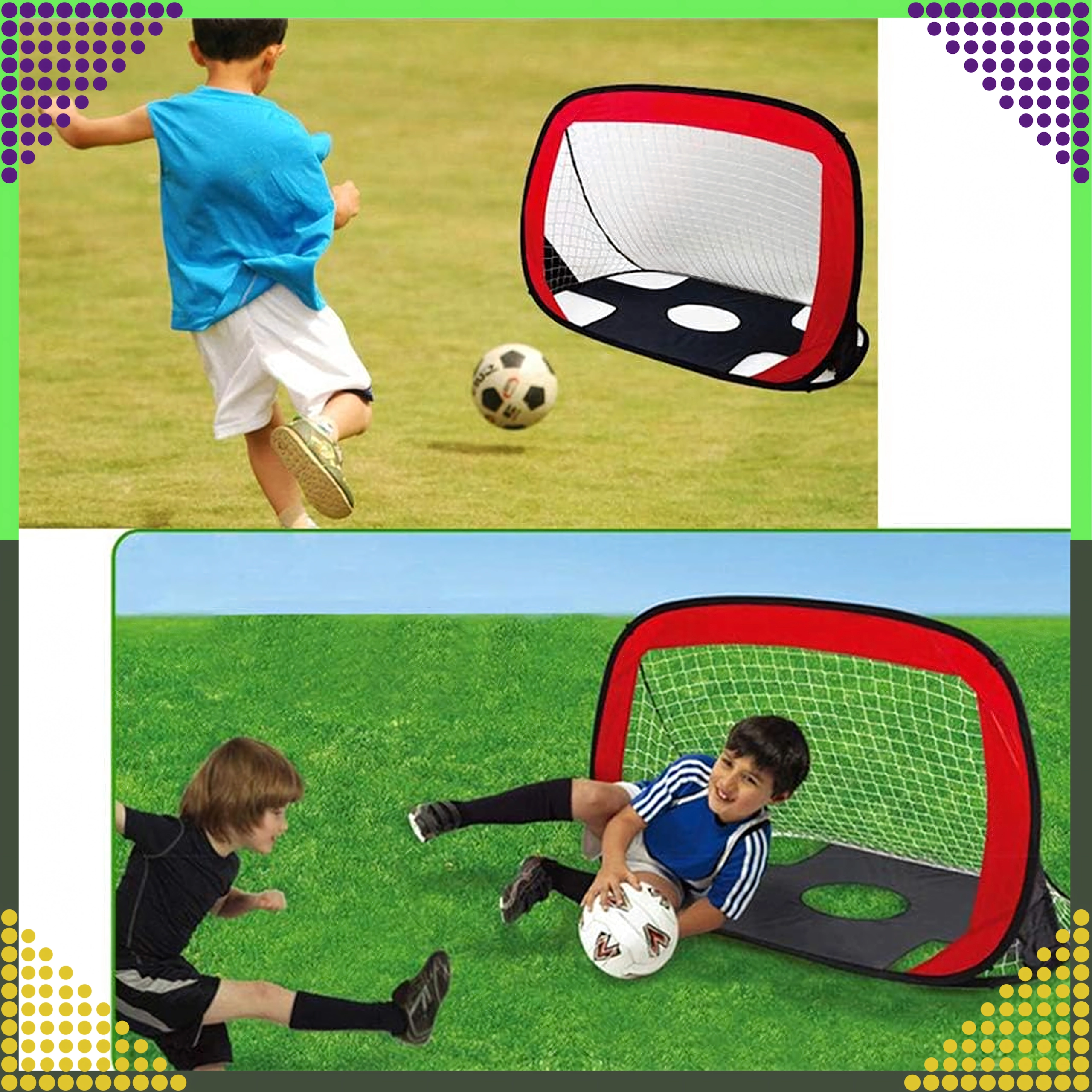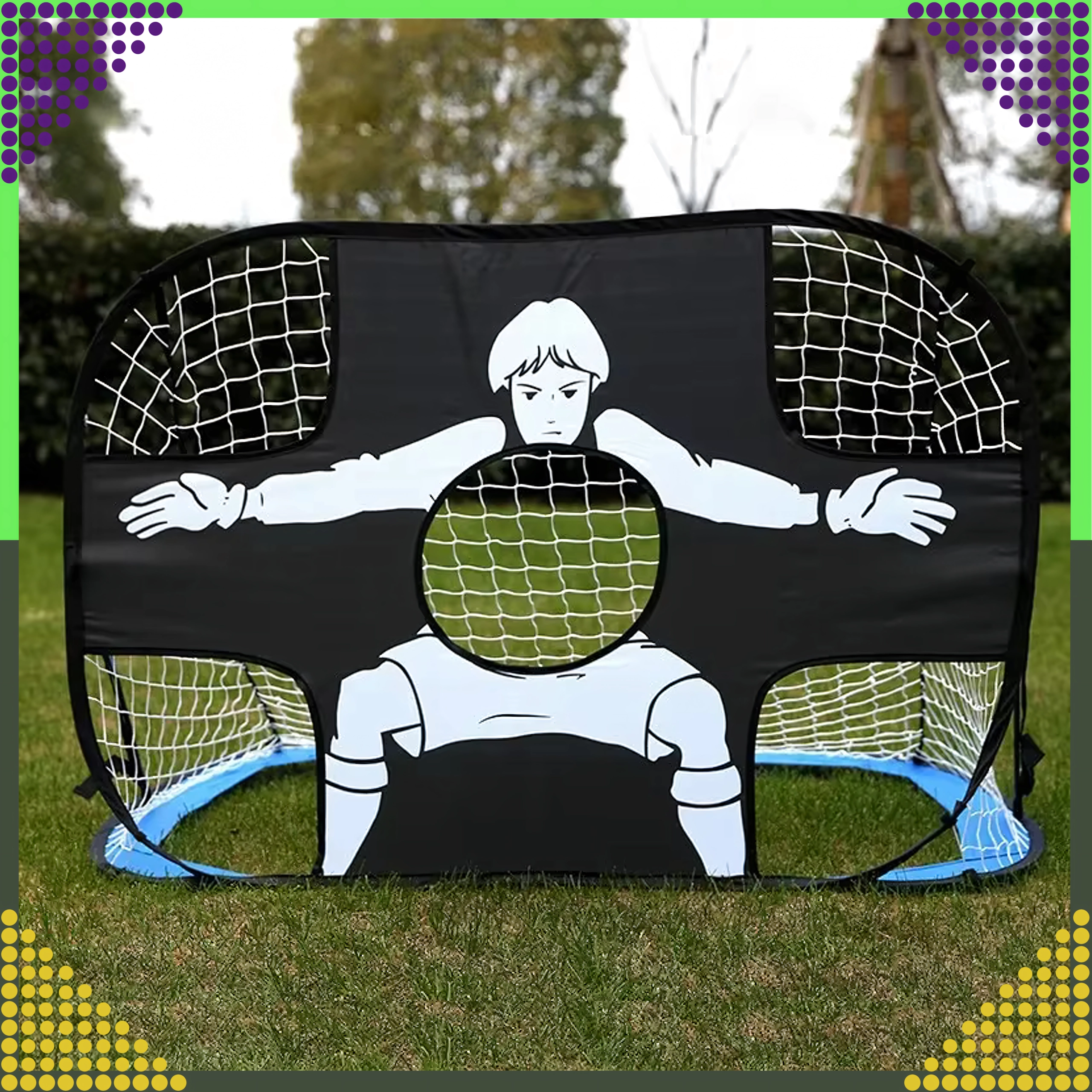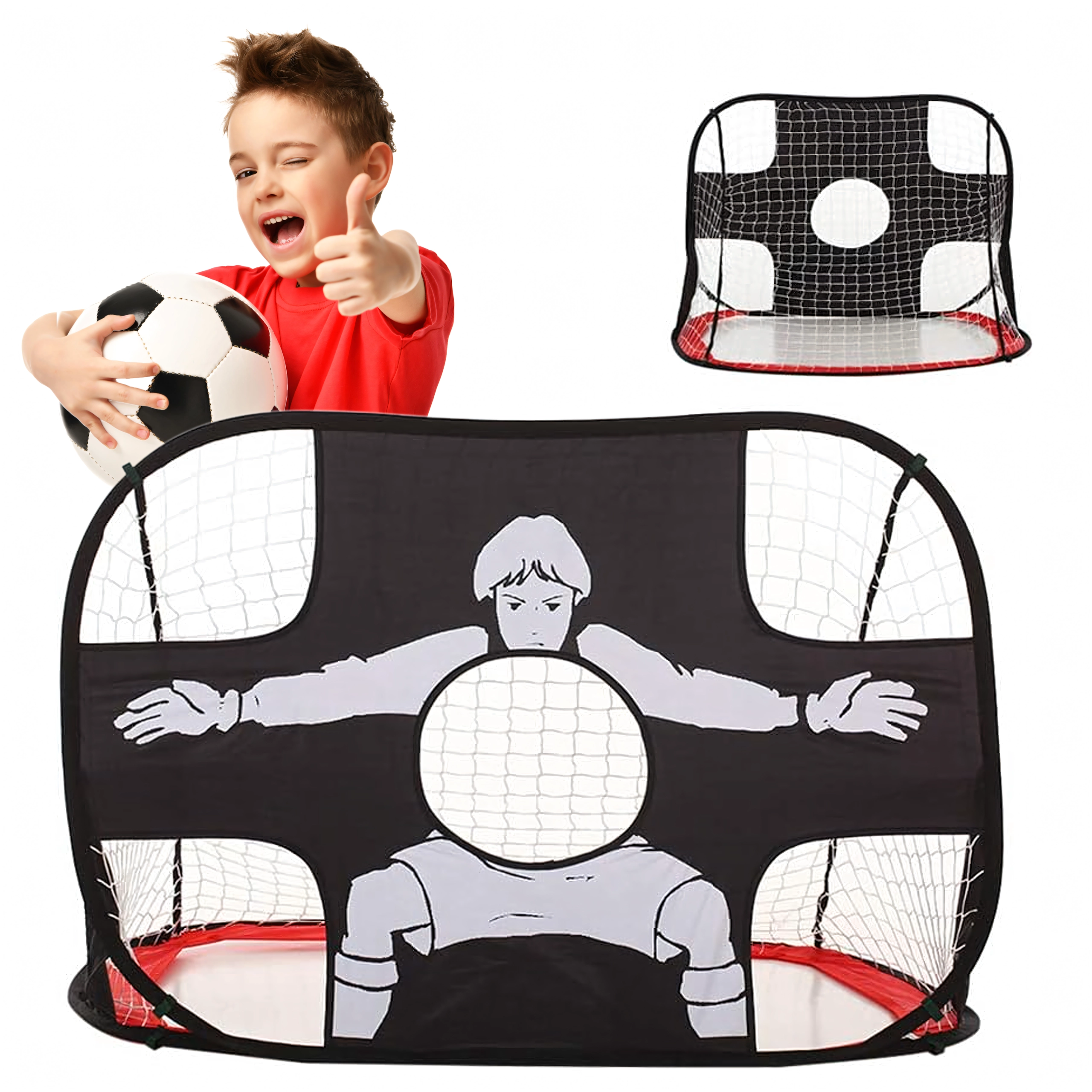 Poarta de fotbal 2‑în‑1 ușoară și portabilă, cu pânză‑țintă, oferă deschidere rapidă tip pop‑up, antrenament al preciziei șutului și distracție pentru copii și adulți. Datorită construcției pliabile și husei practice, o poți lua ușor în grădină, pe teren sau în parc.