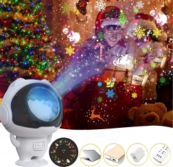 Creați acasă o atmosferă magică în timpul sărbătorilor și pe tot parcursul anului. Lămpița de proiecție în stil astronaut, cu modele colorate, acoperă pereții și tavanul cu motive vesele și aduce o lumină plăcută în interior. Datorită dimensiunilor compacte și bazei stabile, o puteți așeza ușor pe birou, comodă sau pervaz.