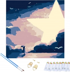 Acest set complet de pictură după numere include o pânză întinsă pe șasiu din lemn, astfel încât poți începe să pictezi imediat după despachetare. Fiecare zonă de pe pânză este marcată cu un număr care corespunde unei culori specifice – este suficient să urmezi instrucțiunile și, sub ochii tăi, va prinde contur un tablou armonios al cerului înstelat.