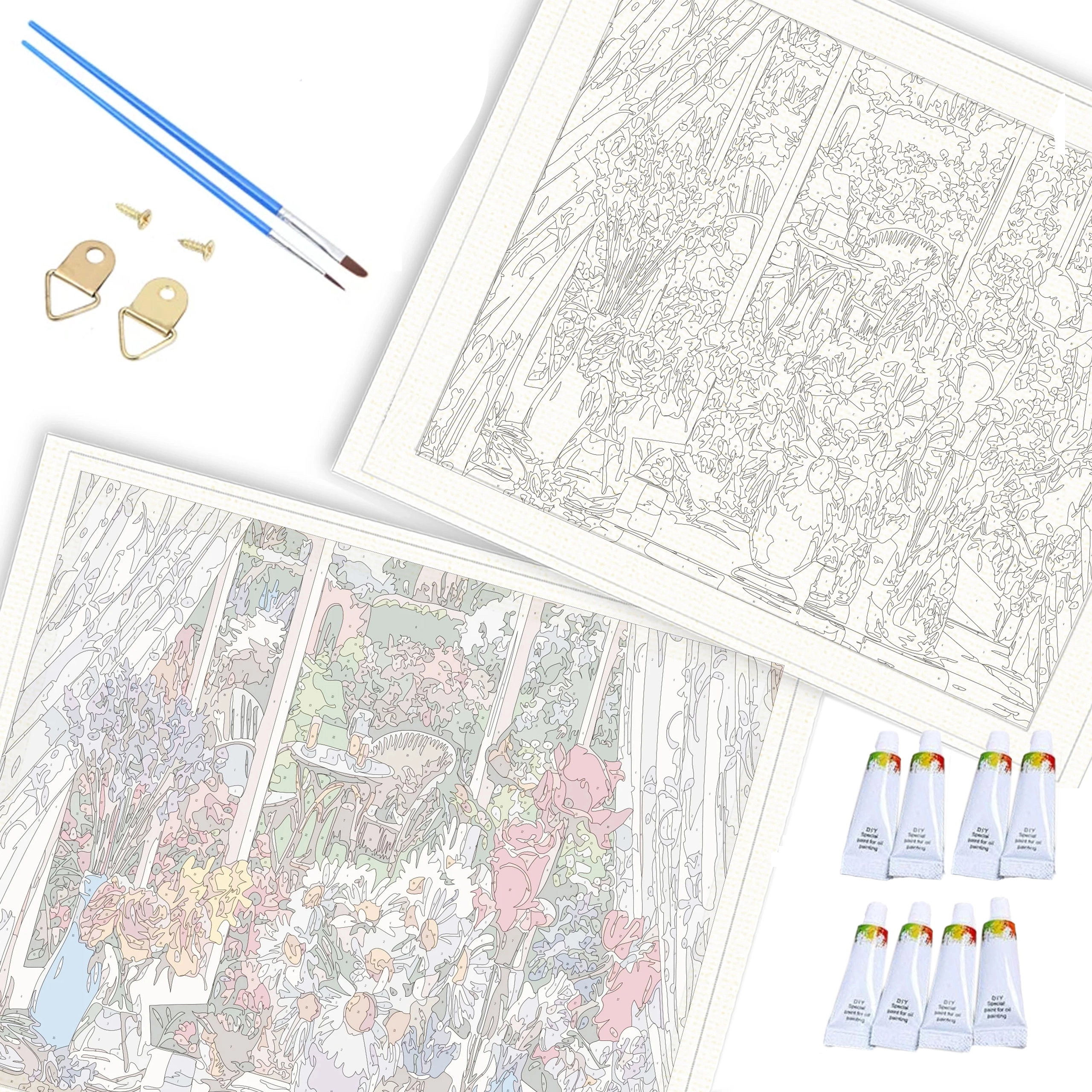 În pachet găsești pânza pe ramă, pensule și un set de culori acrilice – după despachetare poți începe imediat să creezi, iar după finalizare poți agăța tabloul.