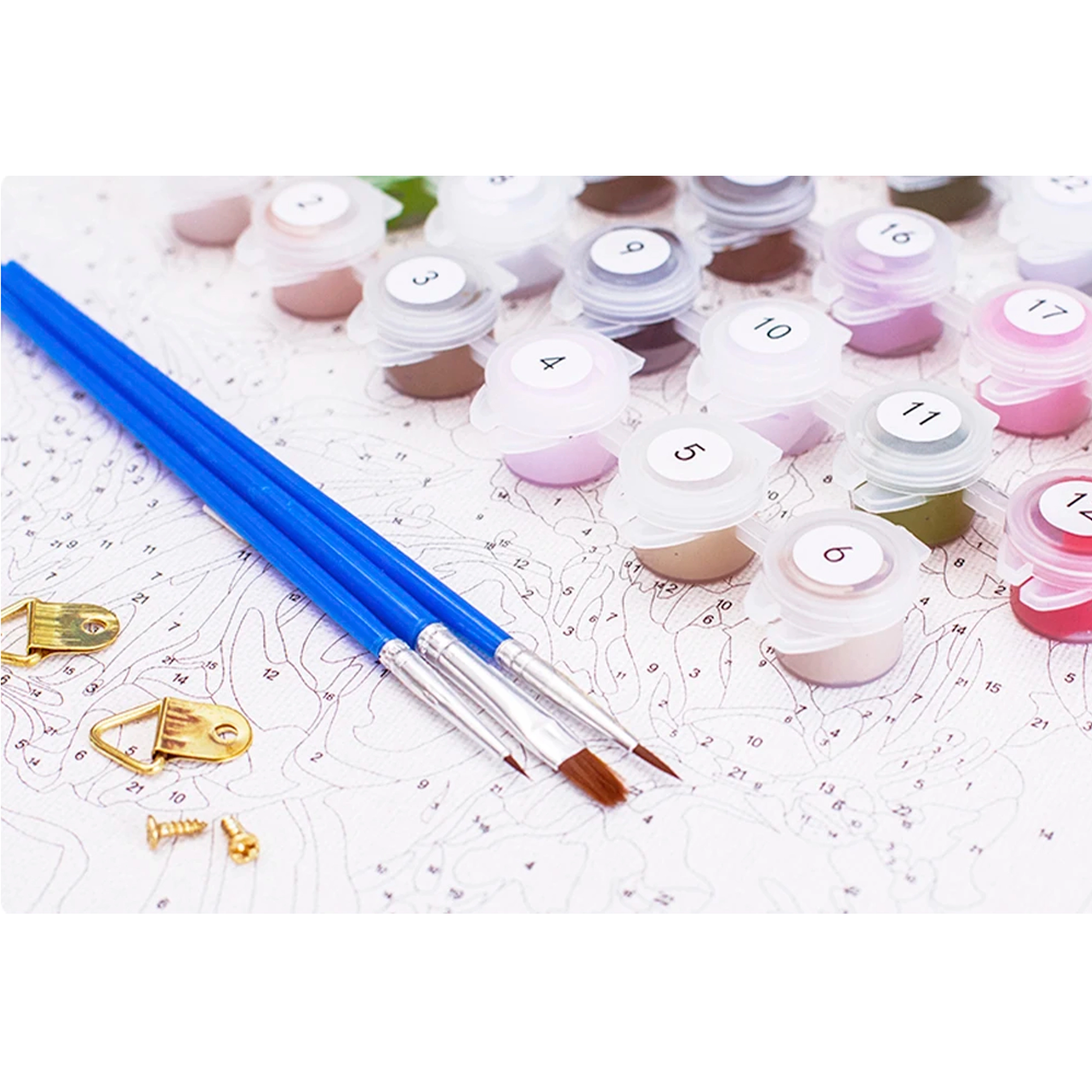 Pânză numerotată, vopsele acrilice și pensule – începe să pictezi imediat după deschidere. Fiecare număr corespunde exact culorii potrivite pentru un rezultat impecabil.