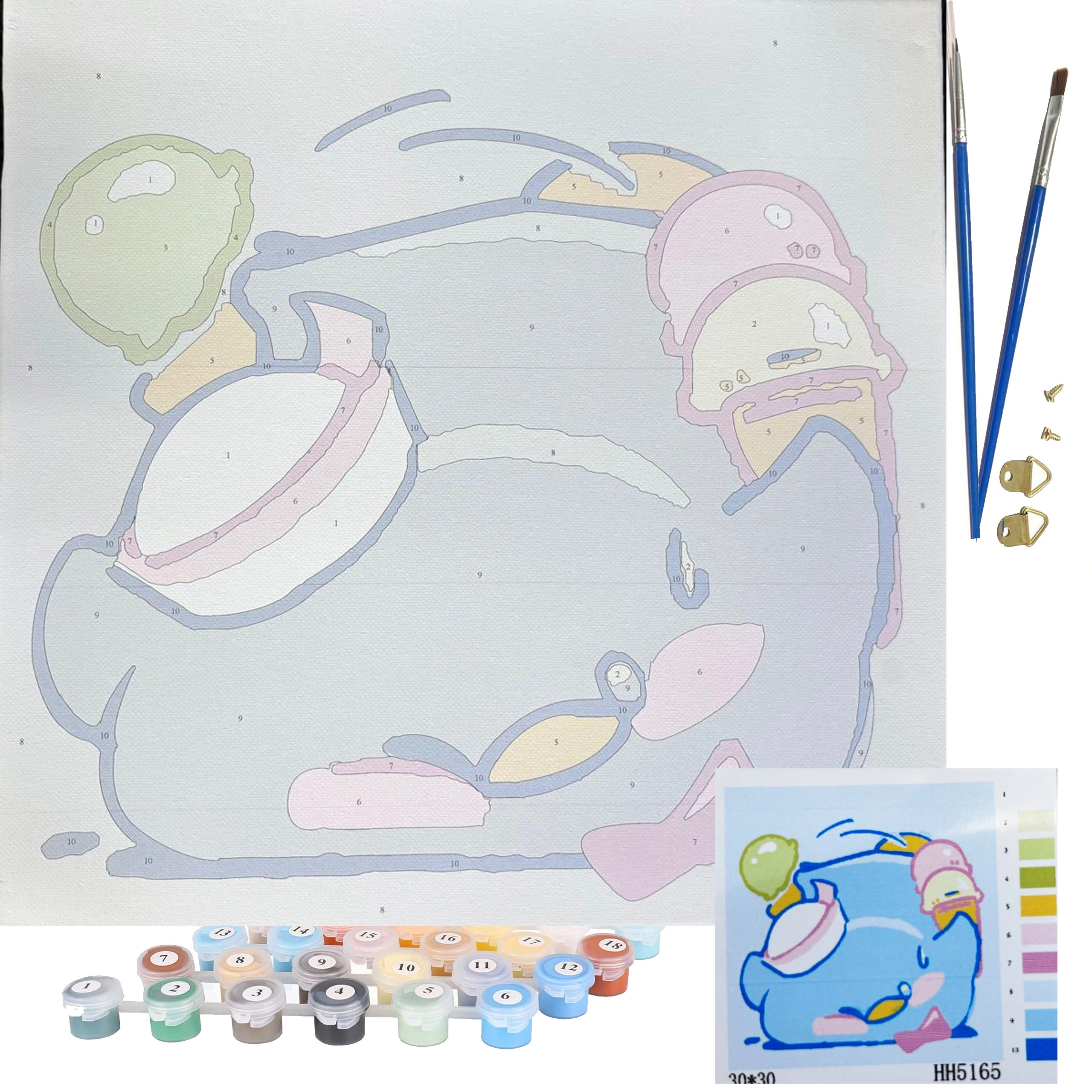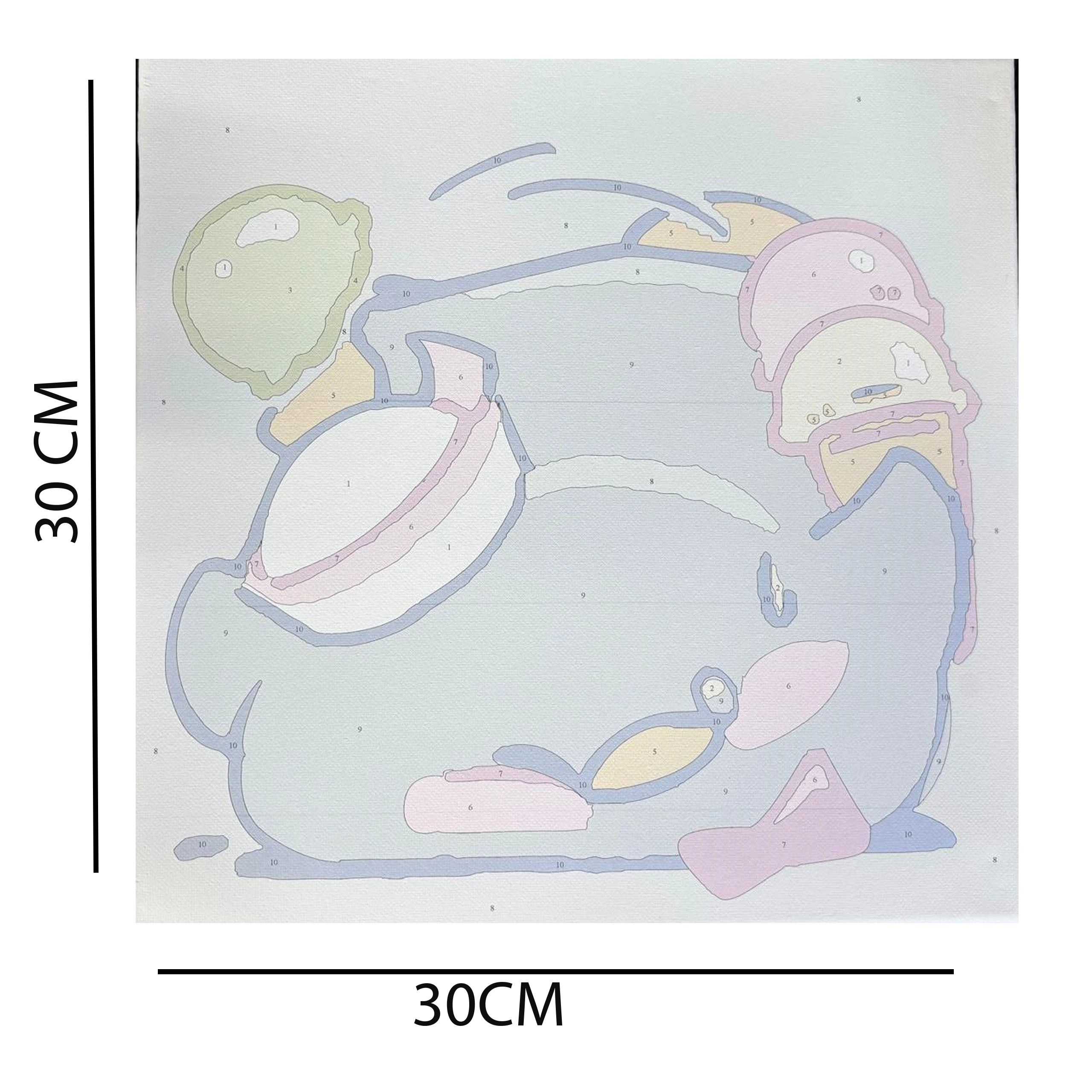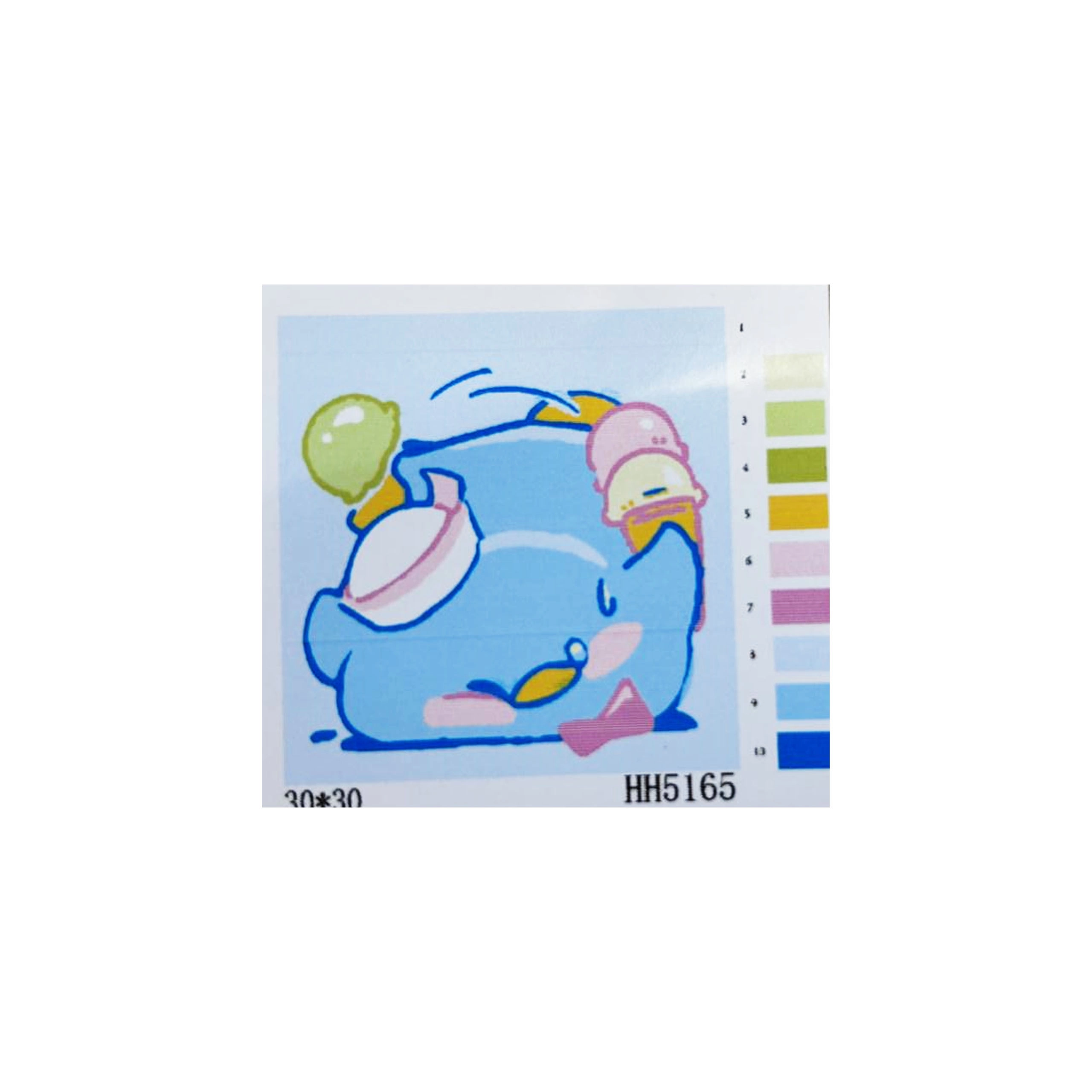 Setul este conceput la un nivel de dificultate potrivit copiilor și conține tot ce este necesar: pânză pretipărită 30 × 30 cm, set de vopsele acrilice și pensule. Modelul și paleta de culori sunt trimise aleatoriu, cu motive pentru copii, pentru o pictură plăcută și accesibilă.