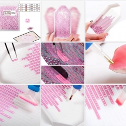 Tăvițele striate, penseta și aplicatorul multiplu permit asamblarea rapidă și precisă a mozaicului cu un luciu superb.