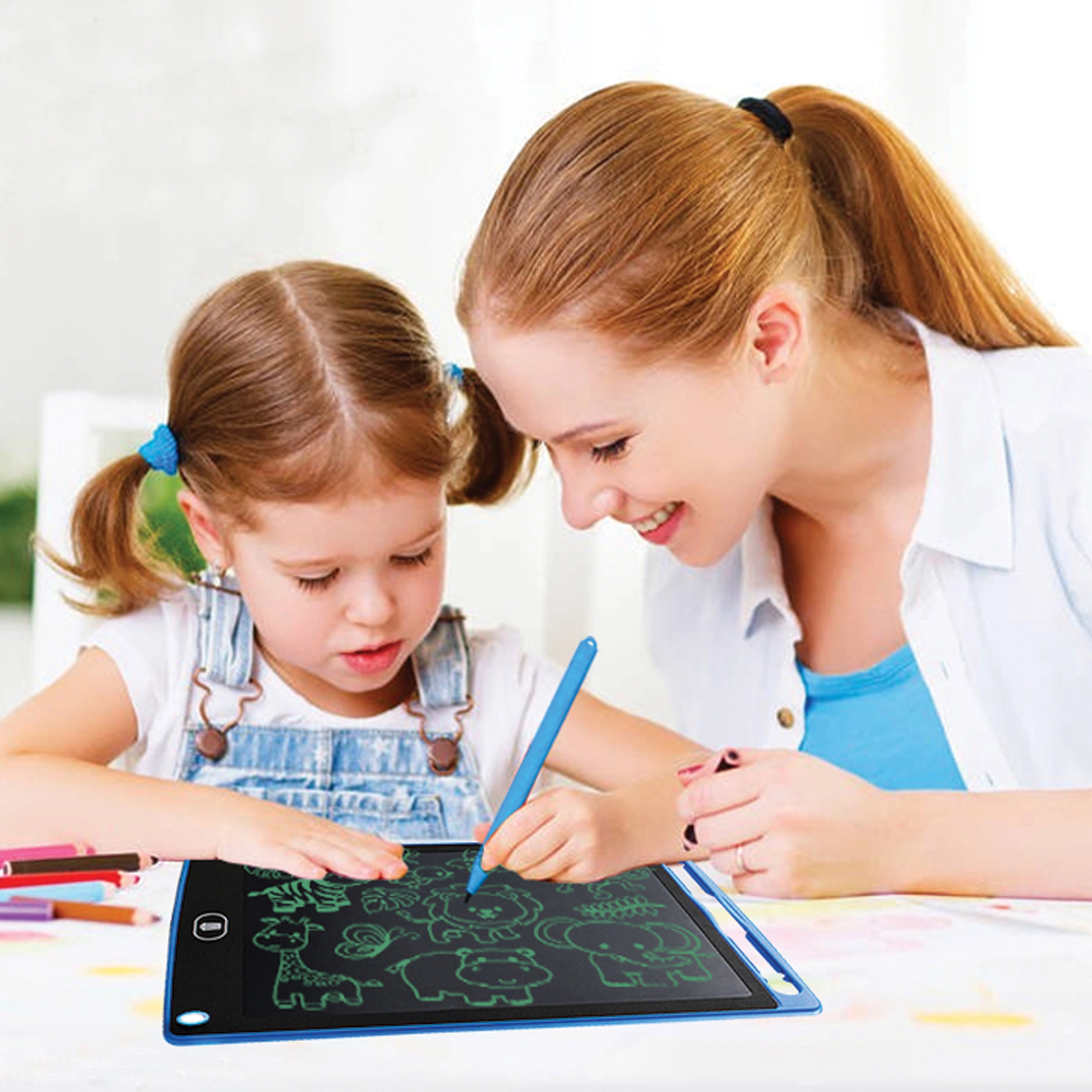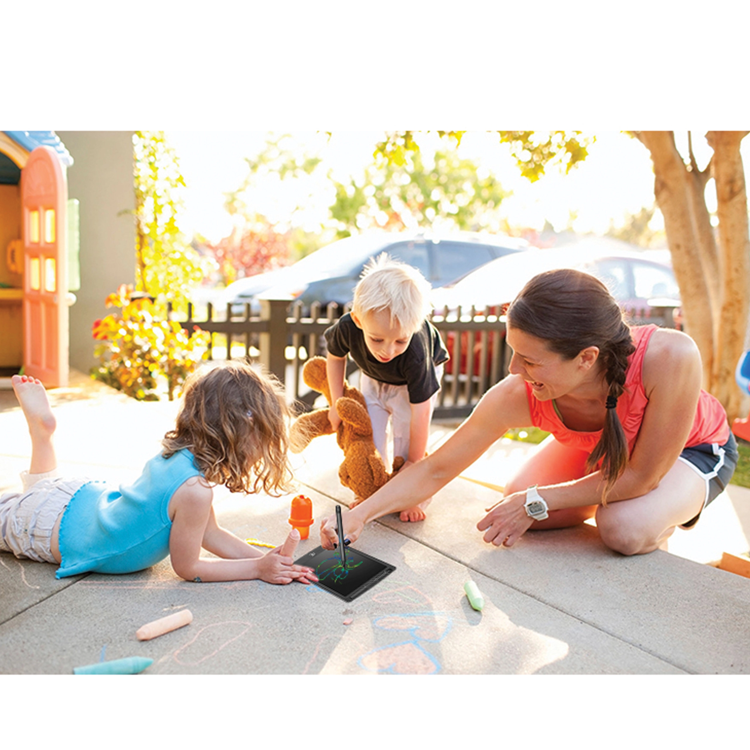 Tabletă LCD ușoară și reutilizabilă pentru desen și scris, cu diagonală de 8,5", pentru copii și adulți. Oferă ecran sensibil la presiune, ștergere rapidă printr-un singur buton și depozitare practică a stylusului în suportul superior. Ideală pentru desen, învățare, notițe și călătorii, fără risipă de hârtie.