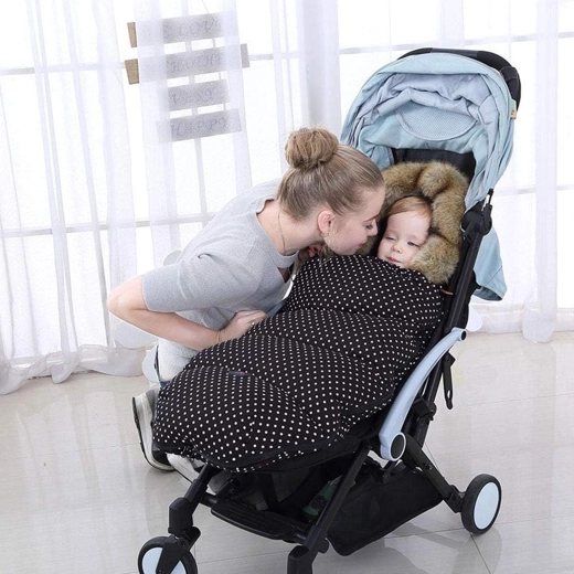 Sacul de iarnă practic FYYIYI pentru cărucioare, landouri și sănii păstrează bebelușul la căldură și confort. Are material exterior rezistent la apă și vânt, microfleece moale la interior și glugă detașabilă cu blăniță eco. Datorită fermoarului cu deschidere dublă și tăieturilor pentru centurile de siguranță, se potrivește excelent în majoritatea cărucioarelor și scoicilor.