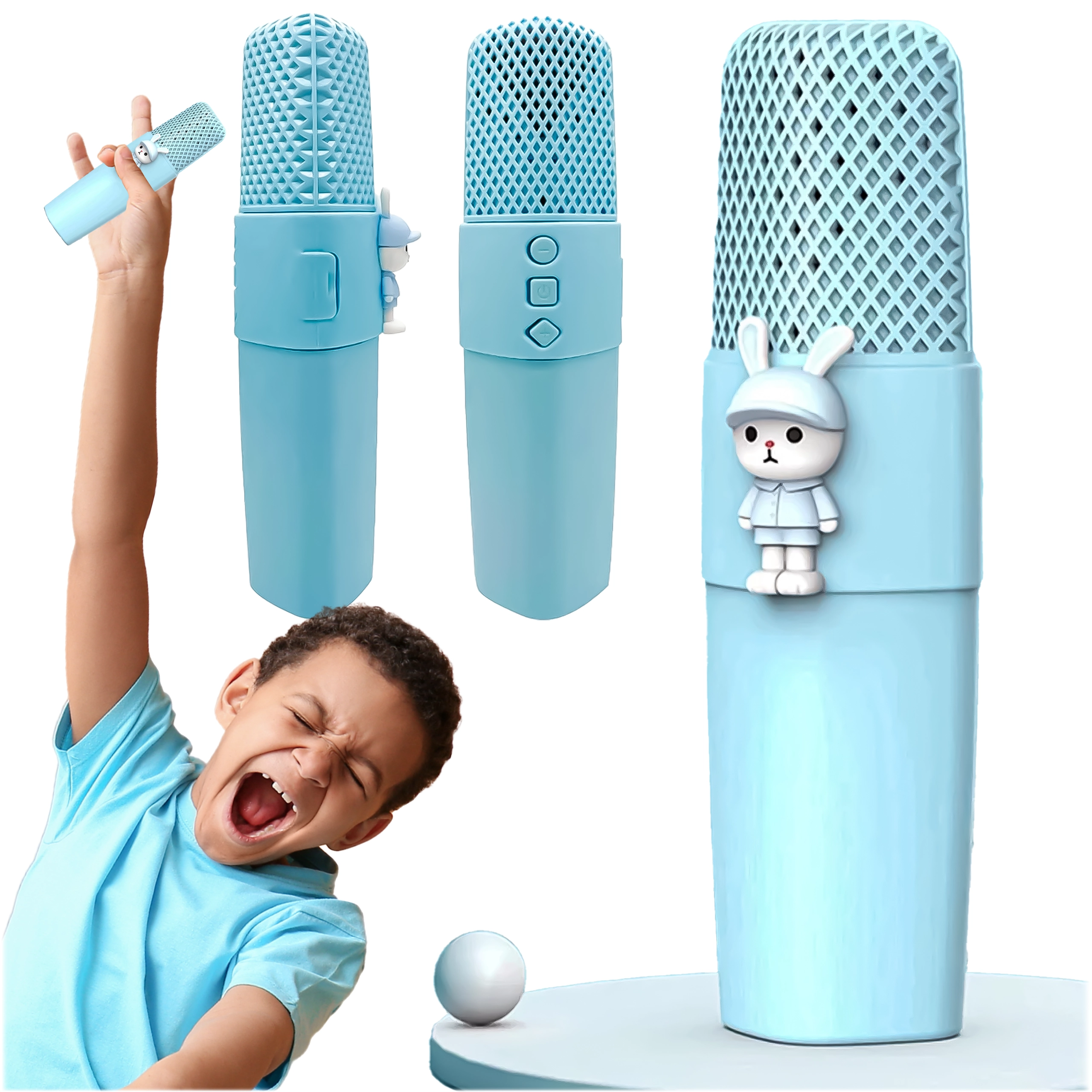 Design drăguț cu motiv de iepuraș, construcție sigură și control simplu fac din acest microfon o alegere perfectă pentru micii cântăreți. Datorită Bluetooth, se împerechează ușor cu smartphone-ul sau tableta și permite redarea, pauza, sărirea peste melodii și schimbarea volumului fără a atinge dispozitivul.