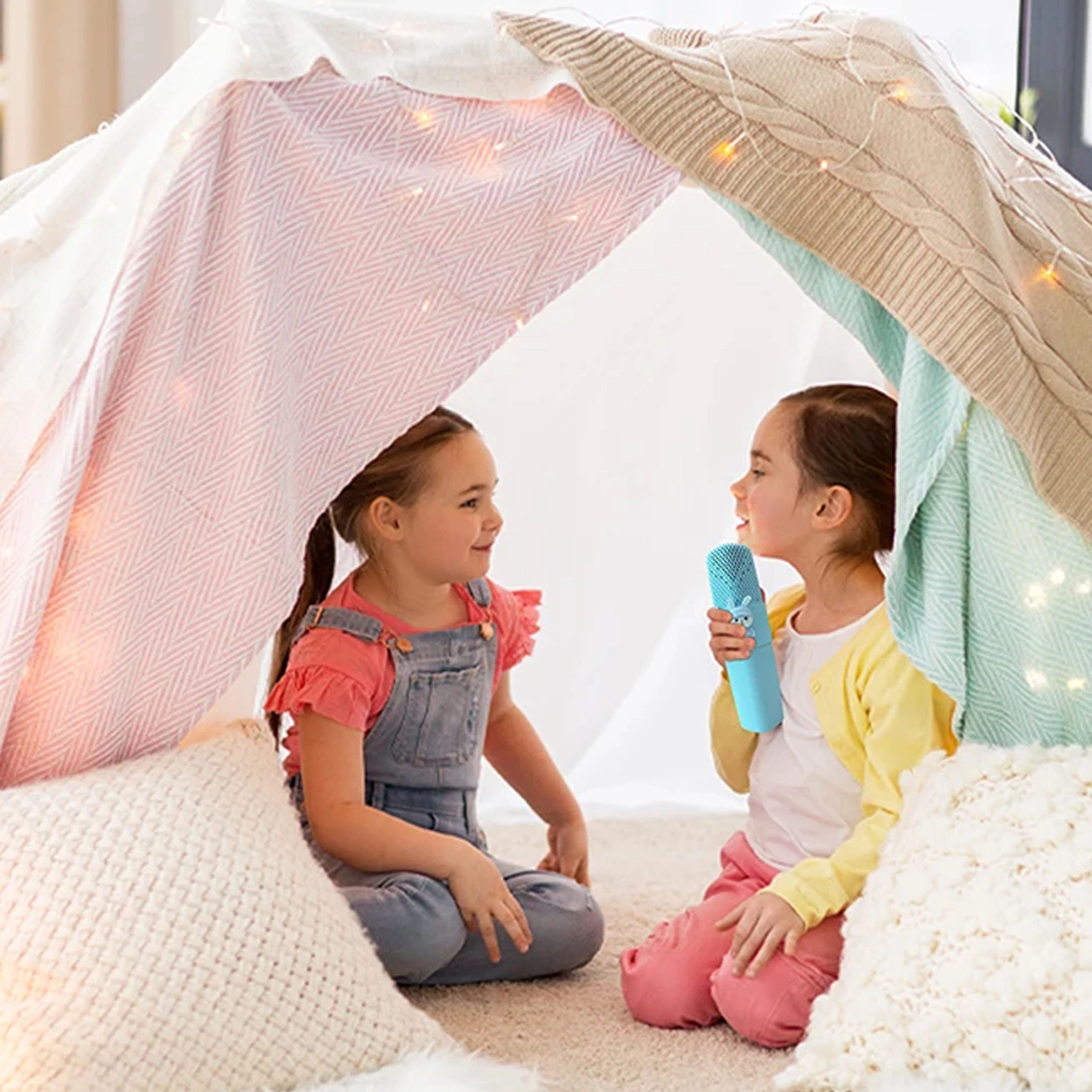 Pornește karaoke-ul de acasă cu acest microfon wireless pentru copii cu Bluetooth și difuzor integrat de 3 W. Ușor, compact și, datorită bateriei de 600 mAh, oferă până la 5 ore de distracție. Oferă 5 moduri de modulație a vocii, efect de ecou și control comod al muzicii de pe telefon – ideal pentru joacă, cântat și petreceri în familie.