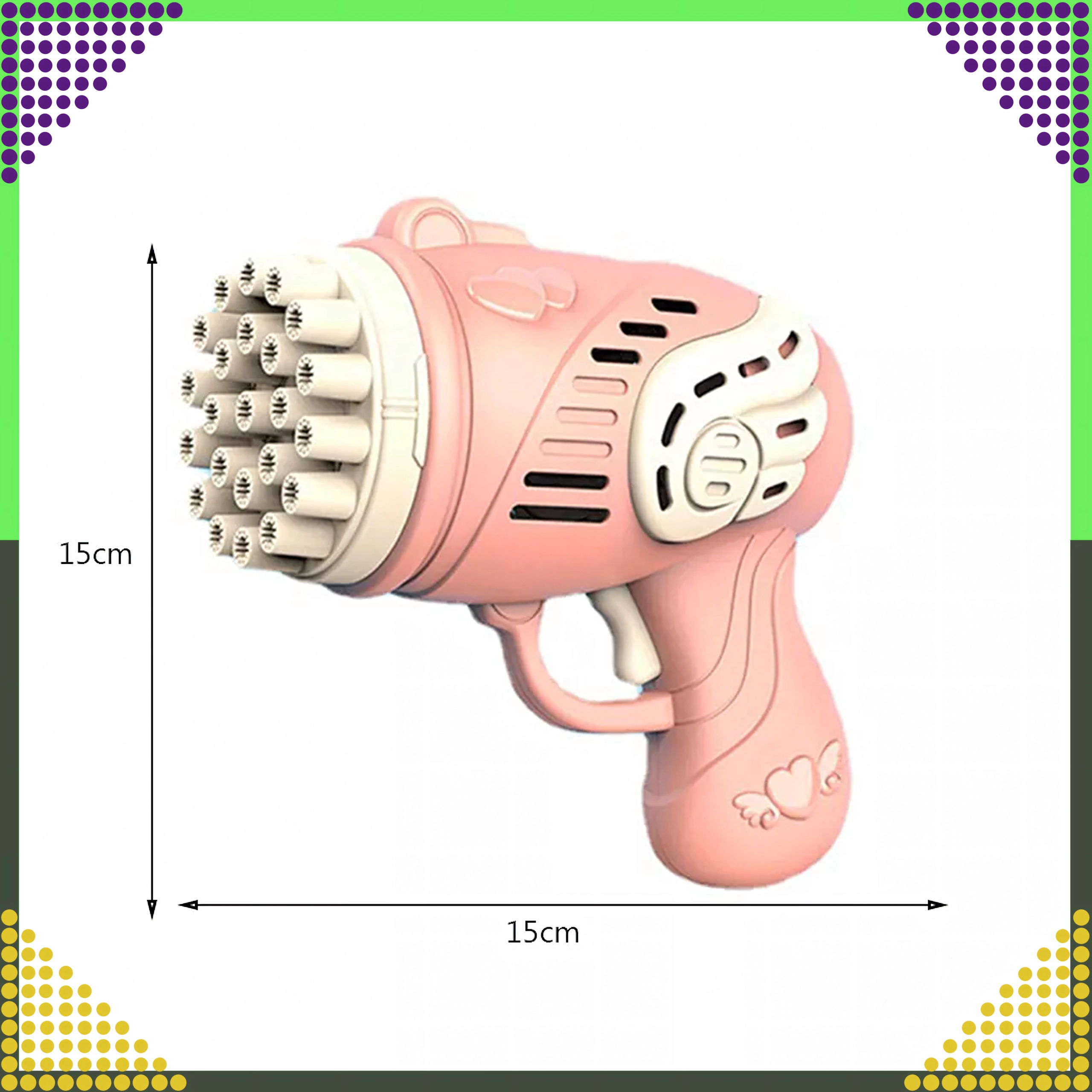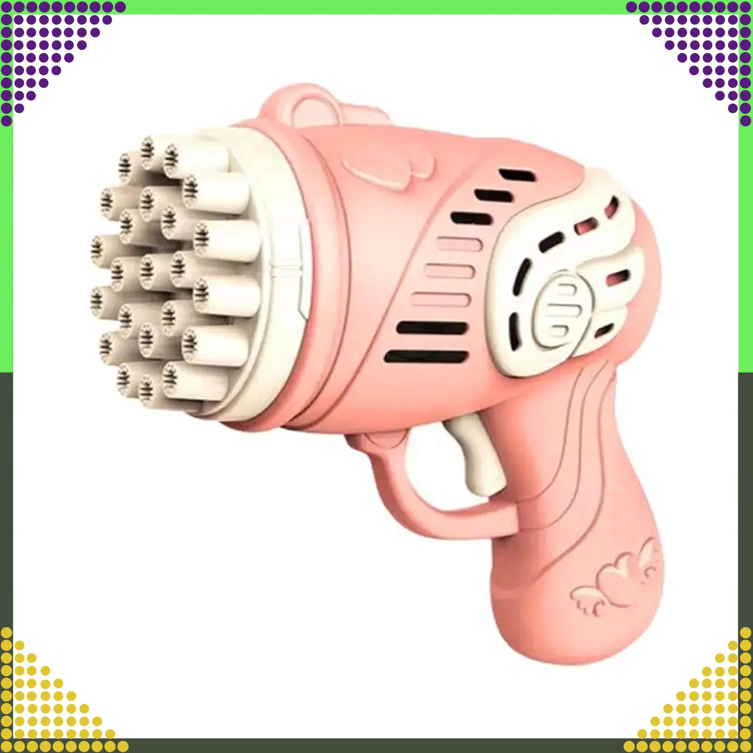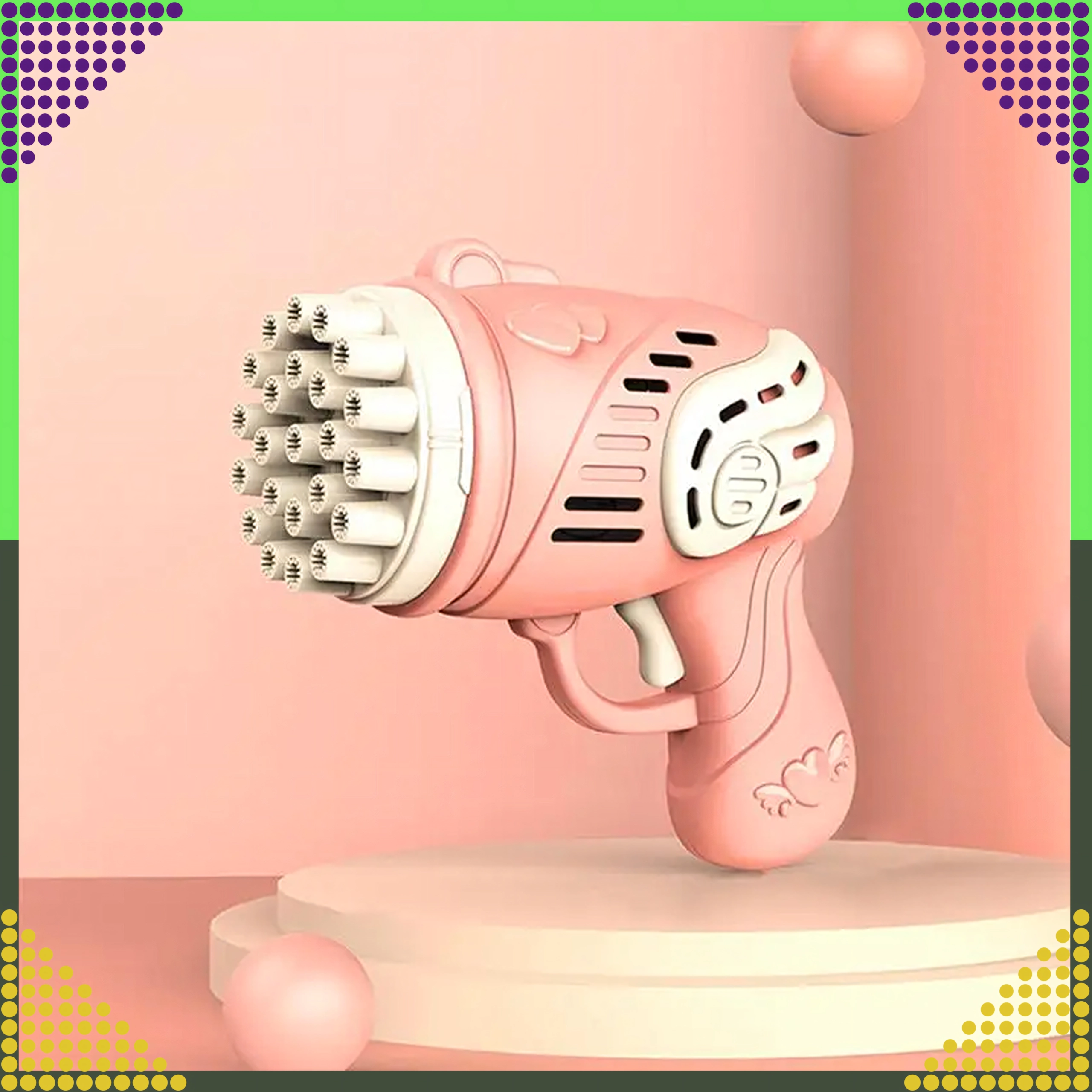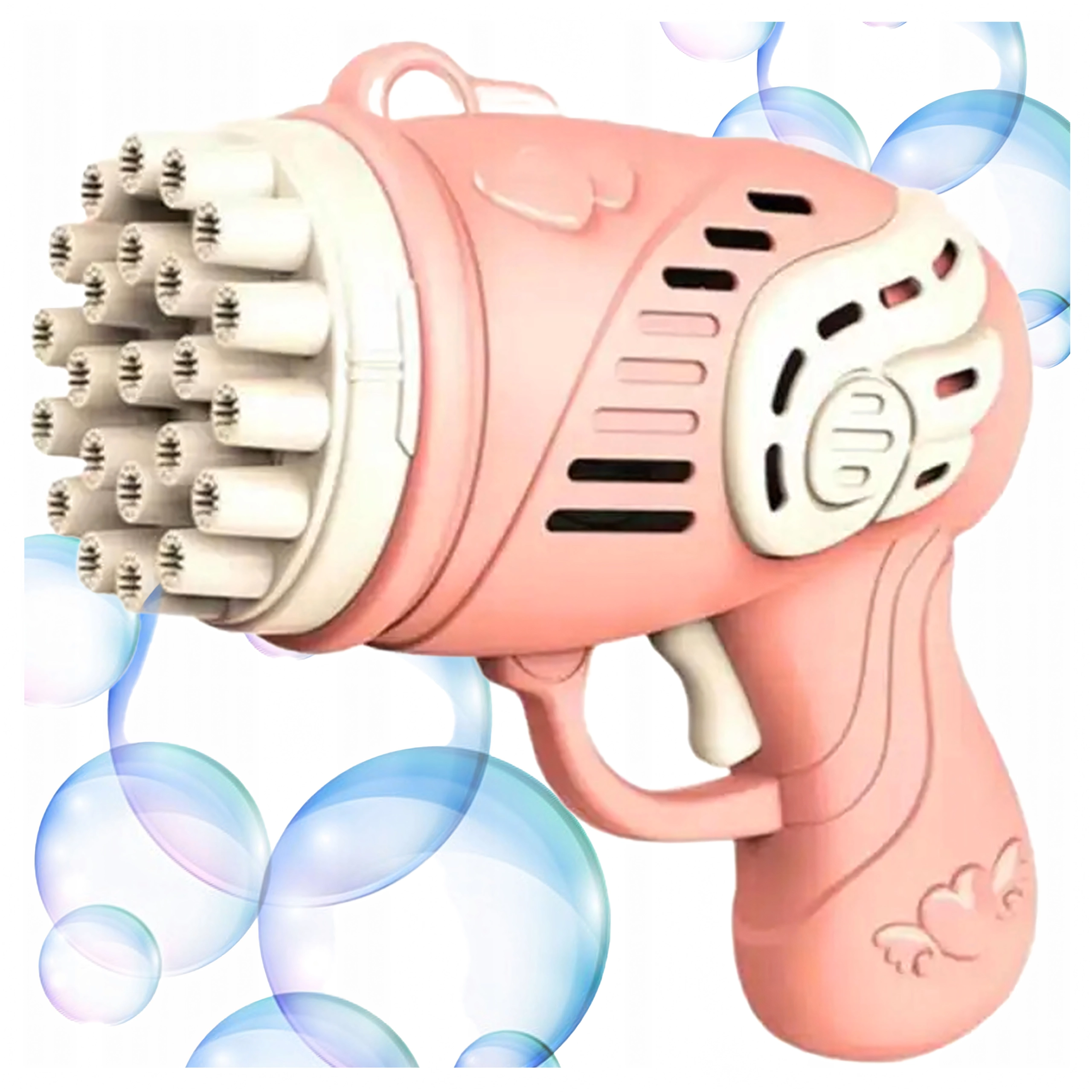 Descoperă magia baloanelor cu pistolul roz, care creează zeci până la sute de baloane curcubeu printr-o singură apăsare. Construcția ușoară, ergonomică și multiplele duze asigură un flux bogat de baloane pentru distracție de neuitat pentru copii și adulți.