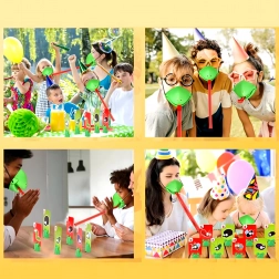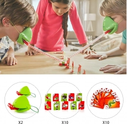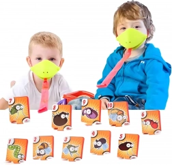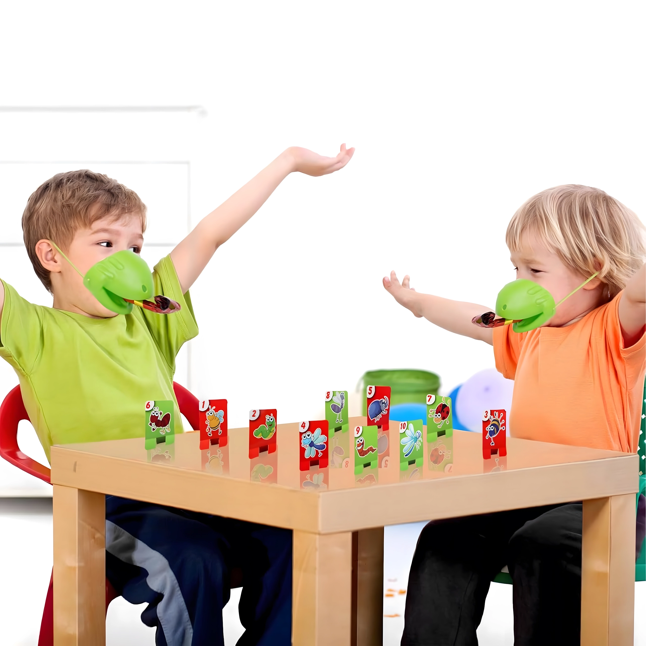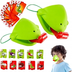Datorită benzilor elastice ajustabile, măștile stau bine, limba flexibilă asigură un joc dinamic și sigur, iar cărțile colorate cu insecte sprijină percepția numerelor, atenția și coordonarea mână-ochi. Grozav pentru seri în familie, petreceri pentru copii și dueluri amicale.
