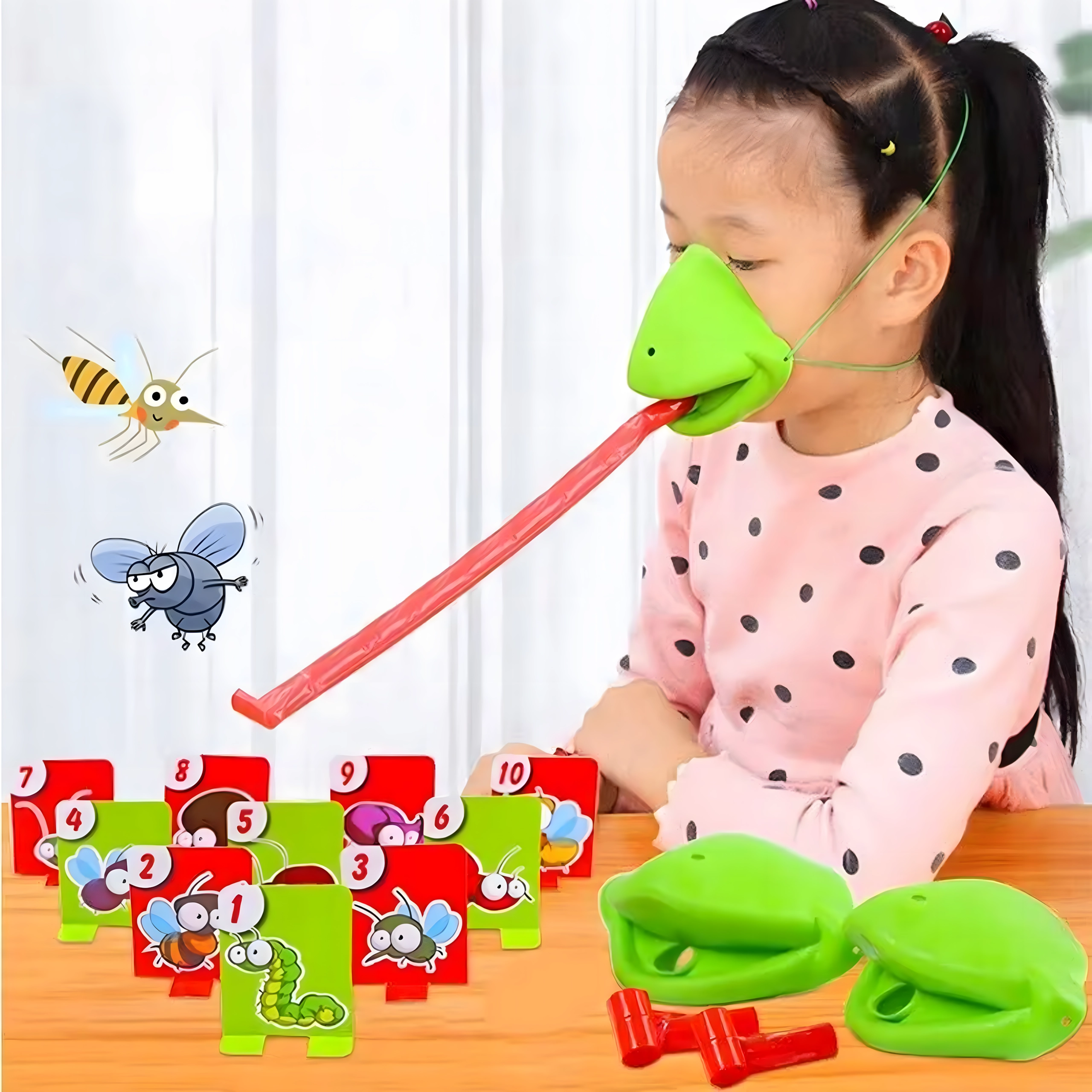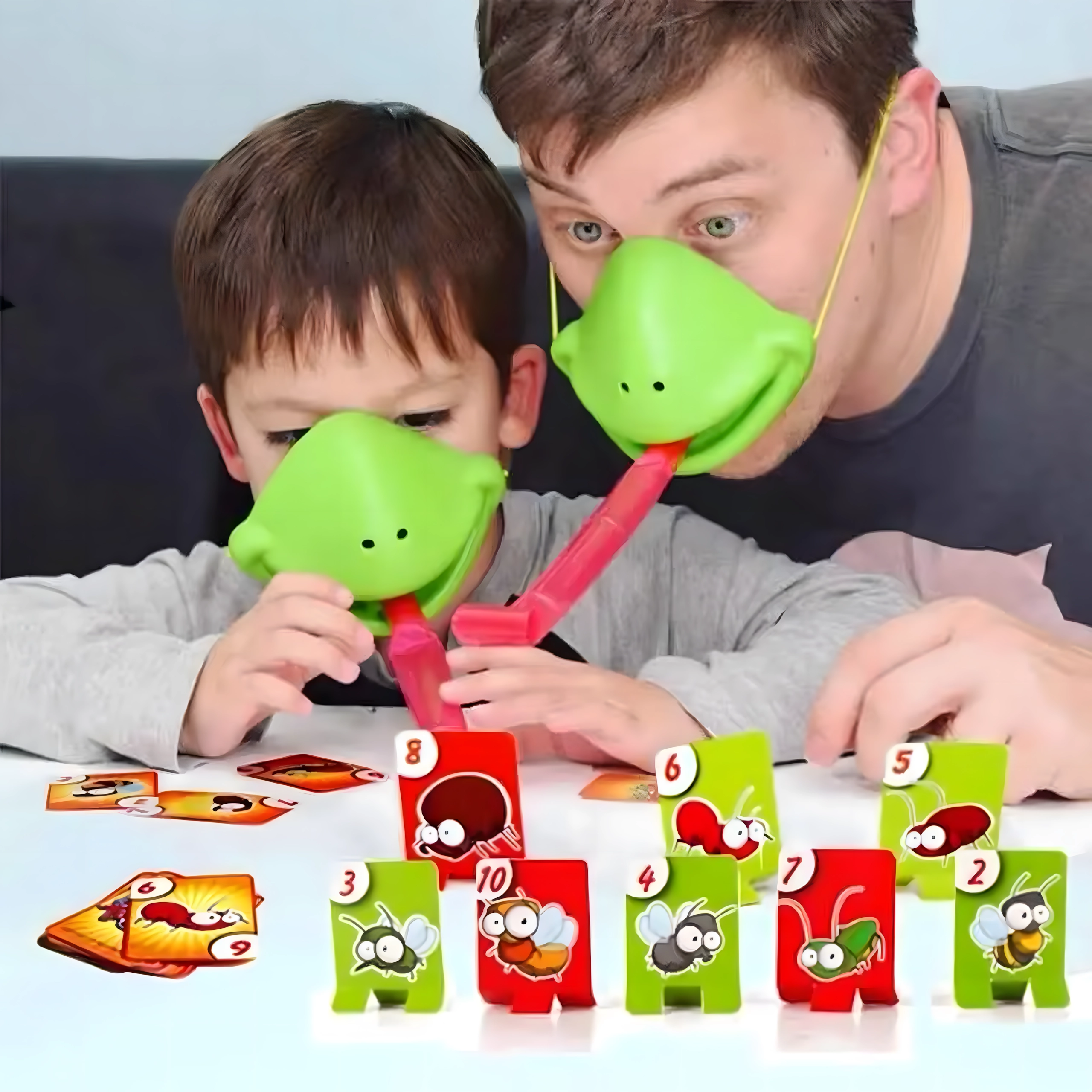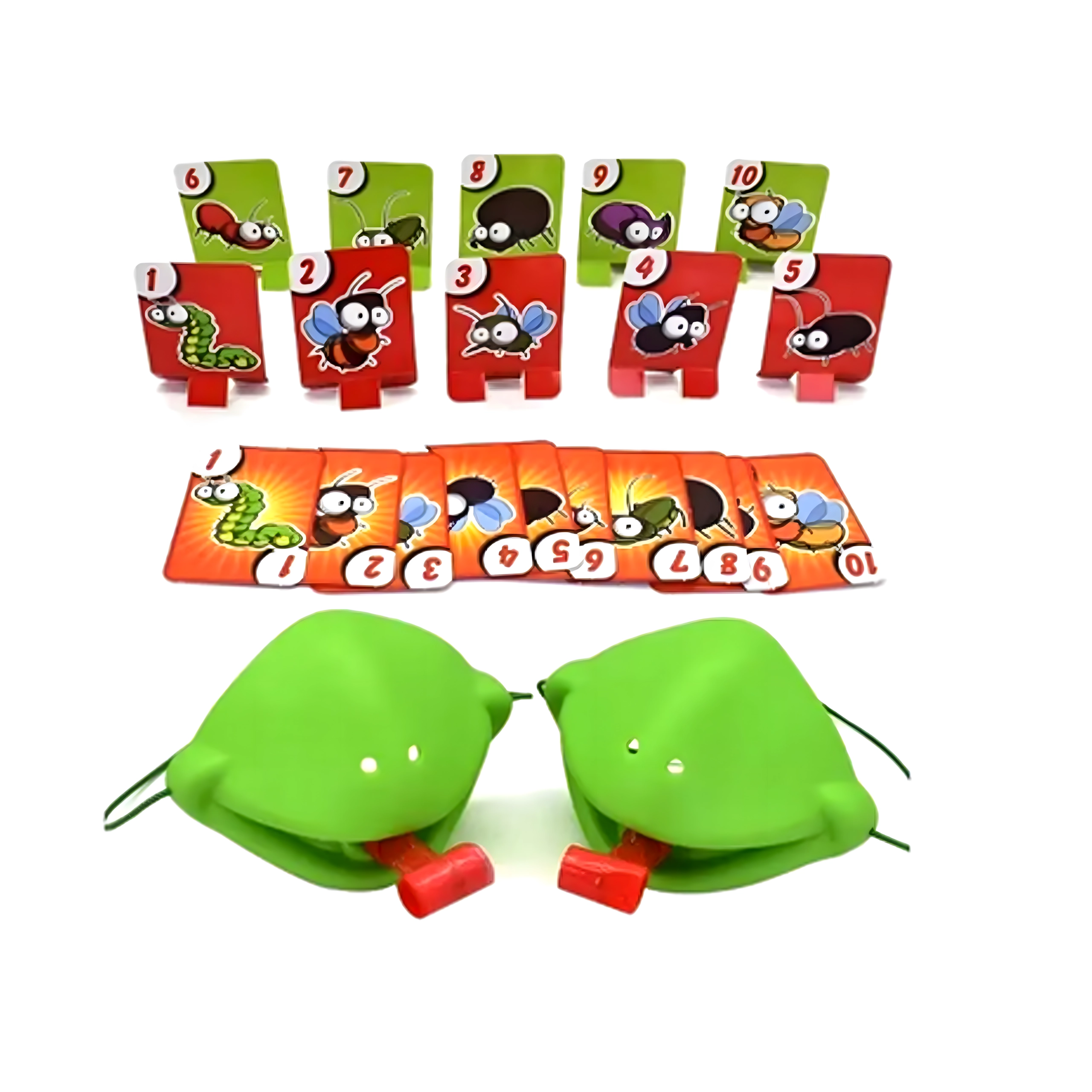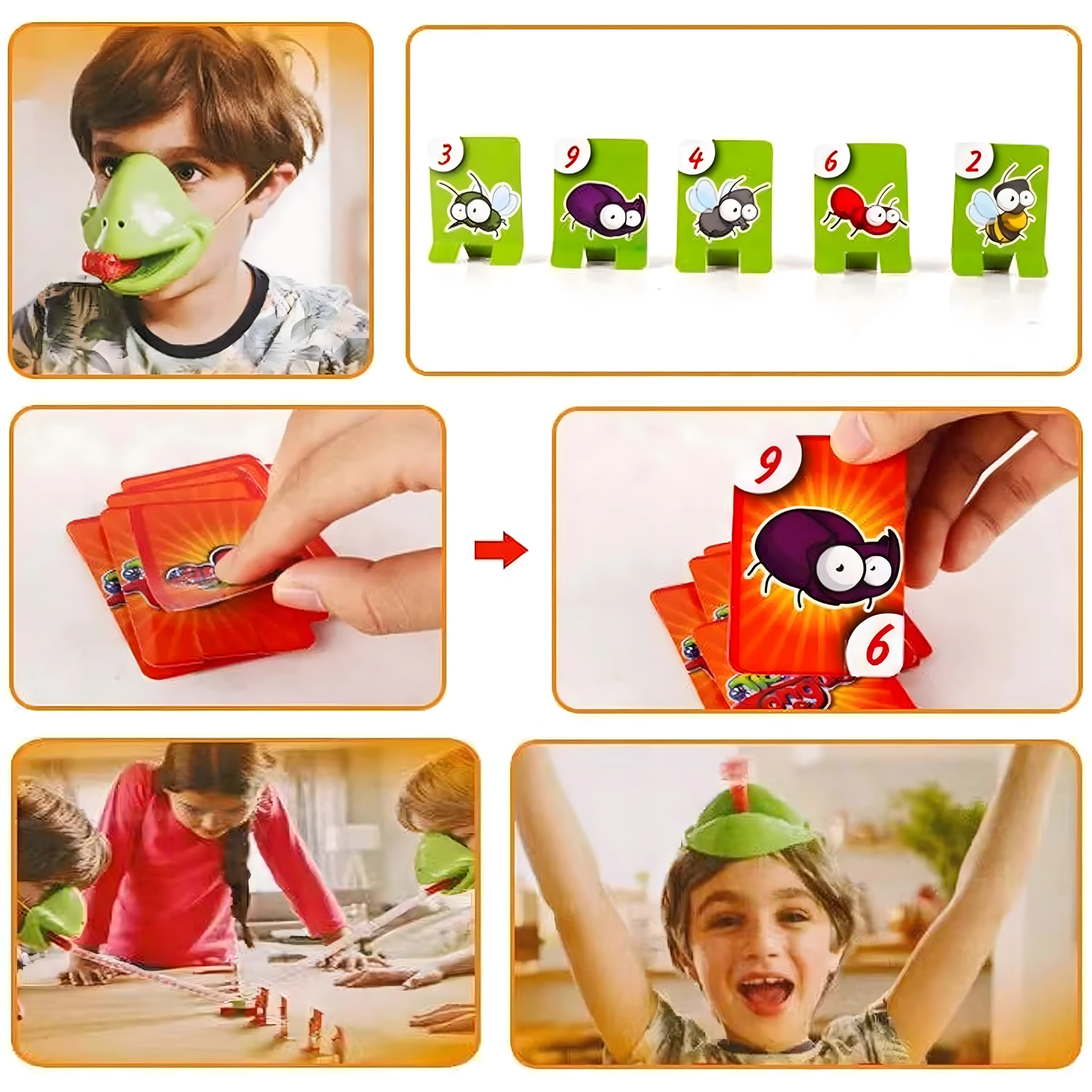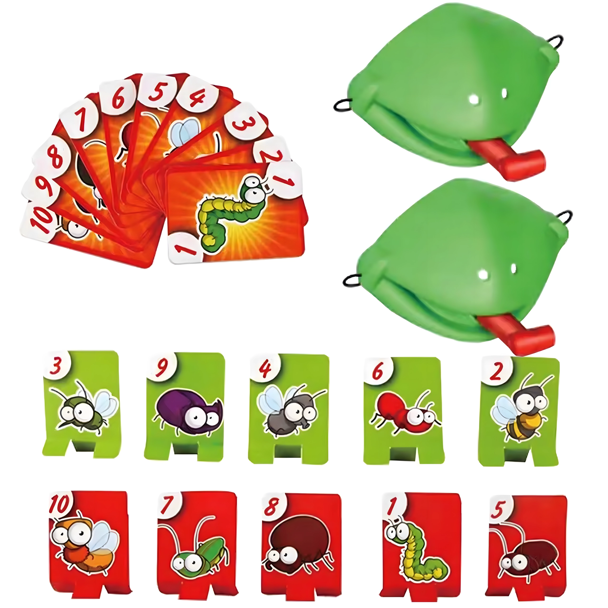 Transformă-te într-o broască și pornește la vânătoare de gândaci! Îți pui masca, țintești și lansezi limba către cărțile-țintă – cine prinde imaginea sau numărul corect cel mai rapid, câștigă puncte. Jocul este ușor de înțeles, gata de jucat în câteva clipe și îi cucerește pe jucătorii mici și mari.