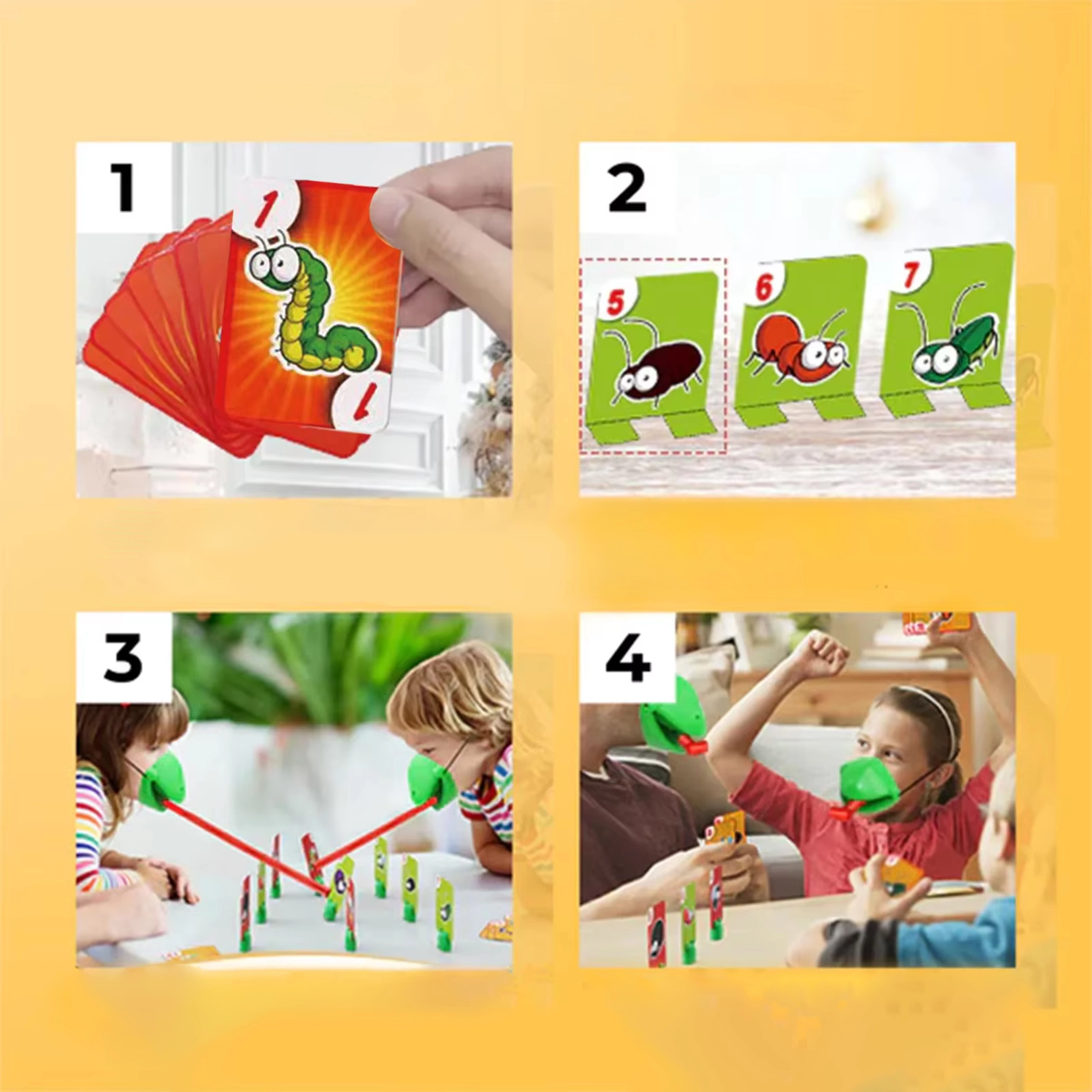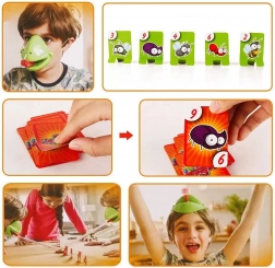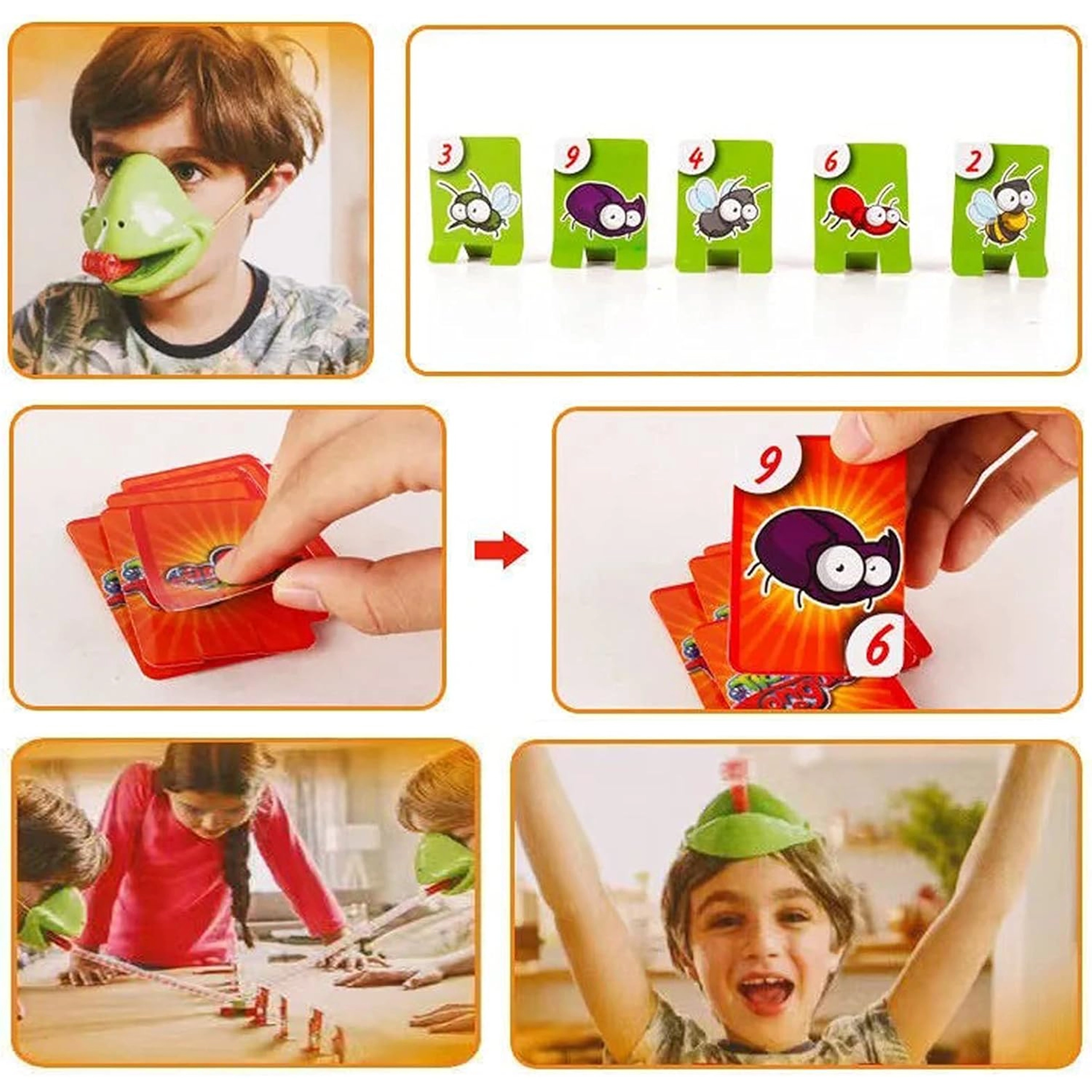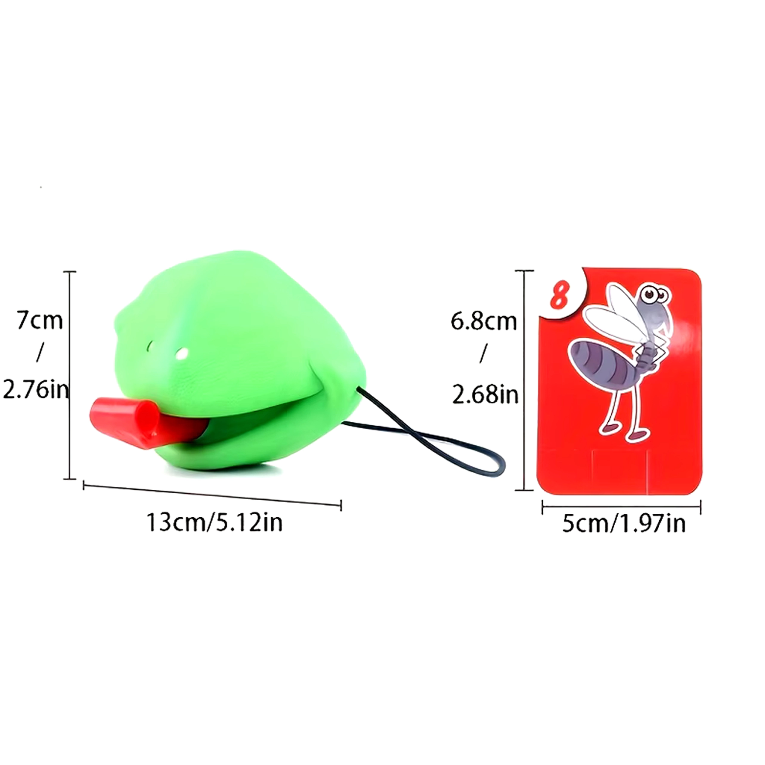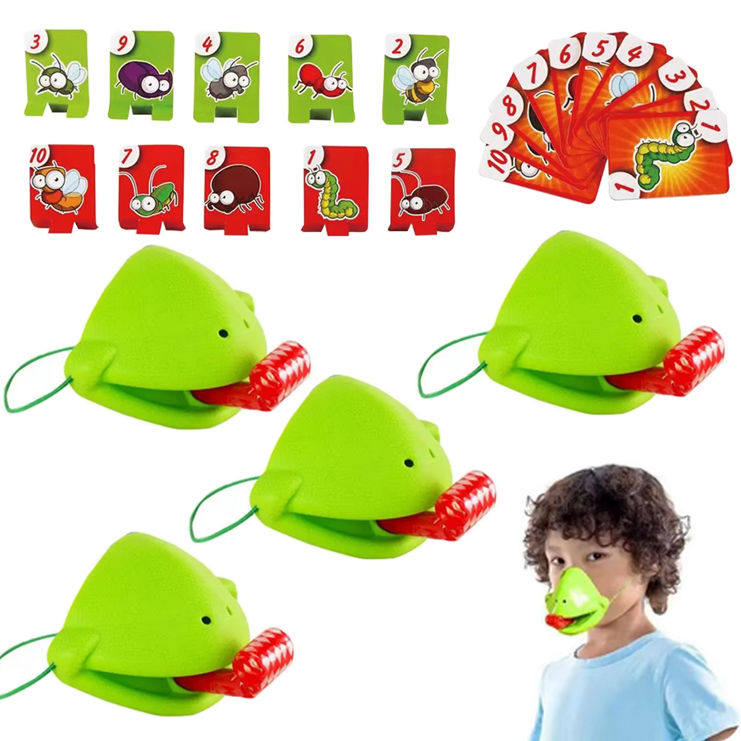 Setul conține totul pentru 4 jucători: măști ușoare de broască, cu bandă elastică și „limbă”, și cărți colorate. Jocul dezvoltă reacții rapide, coordonarea mână–ochi și concentrarea. Ideal pentru seri în familie, petreceri pentru copii și momente relaxante acasă.