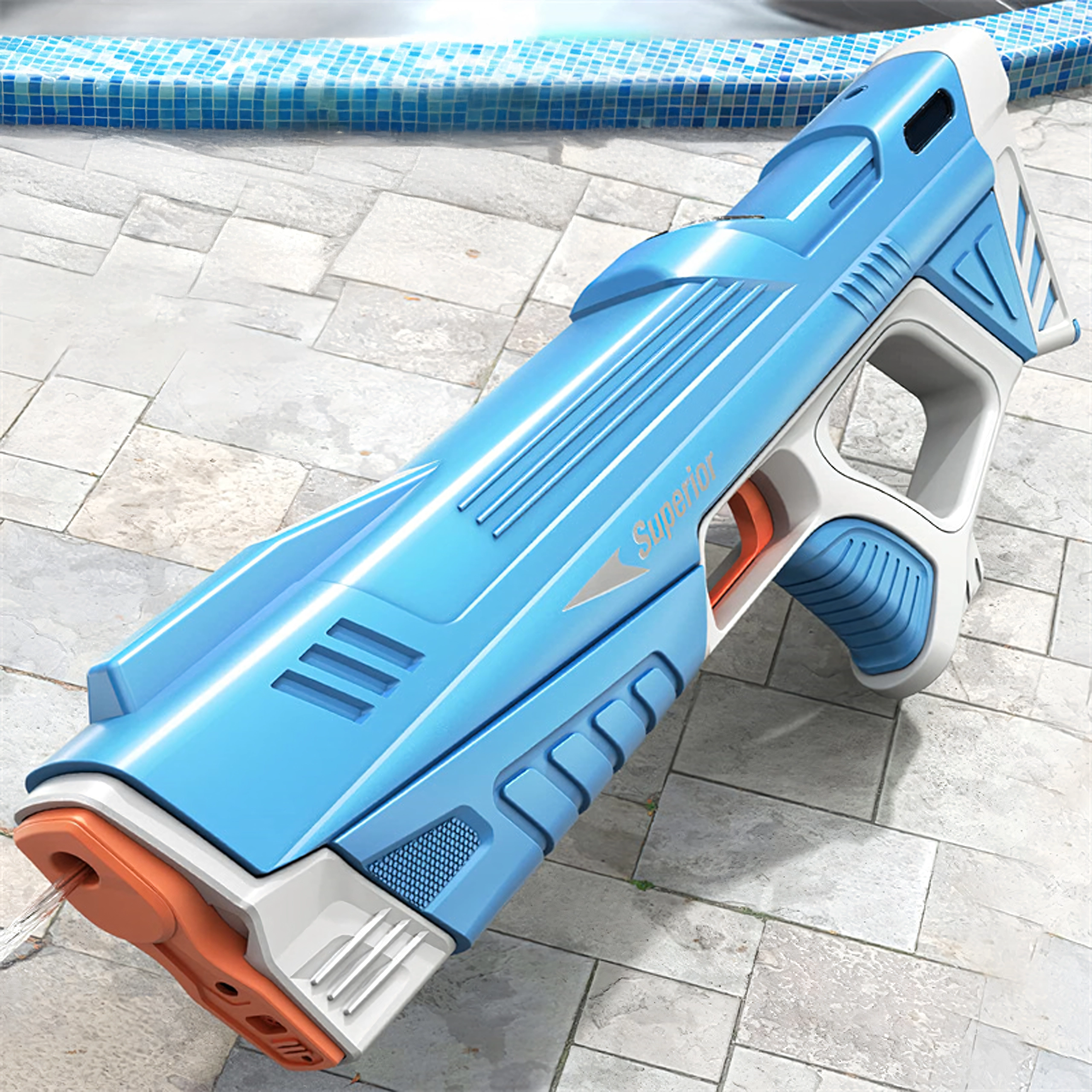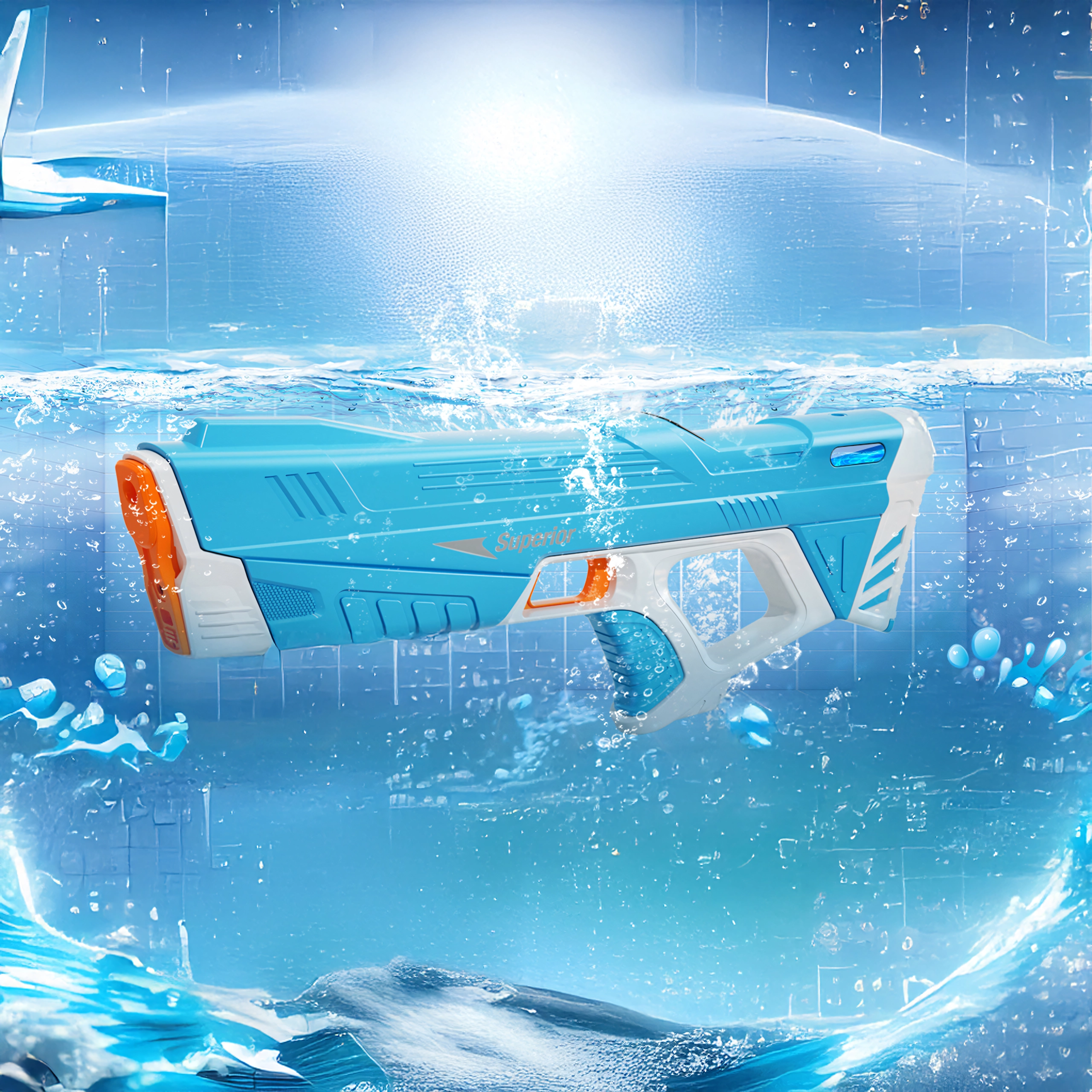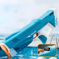 Pistola cu apă electrică oferă confort fără pompare și autonomie mare datorită încărcării prin USB. Mâner ergonomic, construcție din plastic durabil și jet de apă dinamic pentru dueluri pline de acțiune la piscină sau pe plajă.