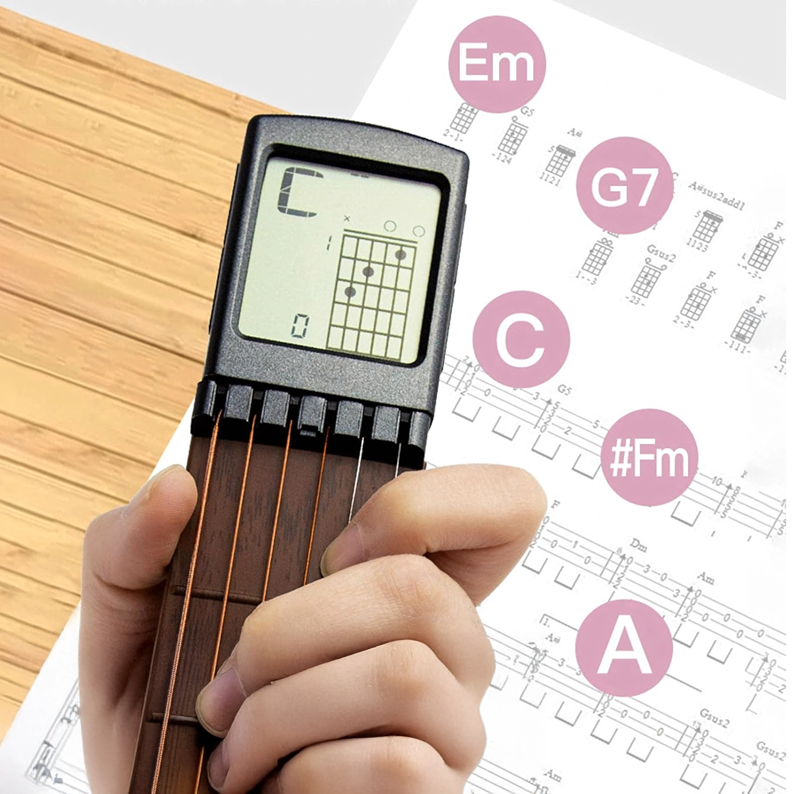 Datorită dimensiunilor compacte, capacului protector glisant și husei incluse, dispozitivul este ideal pentru călătorii, școală și serviciu. Metronomul integrat susține antrenamentul precis al ritmului, iar acordorul/indicațiile de pe ecran facilitează setarea corectă. O alegere excelentă pentru începători, autodidacți și chitariștii care vor să-și mențină degetele în formă.
