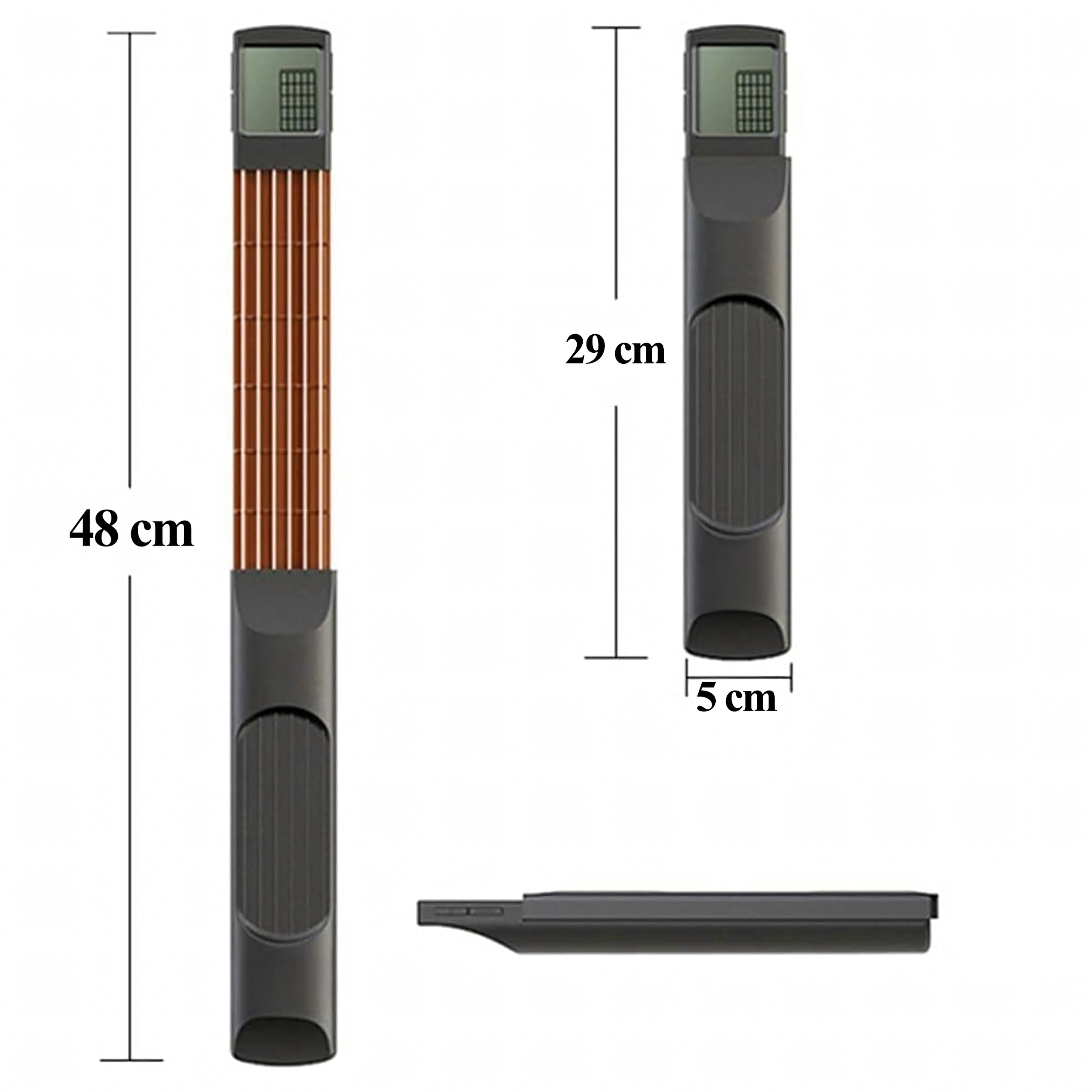 Tastiera scurtă cu corzi din oțel simulează fidel senzația de cântat la chitară și ajută la construirea memoriei musculare a degetelor.
