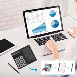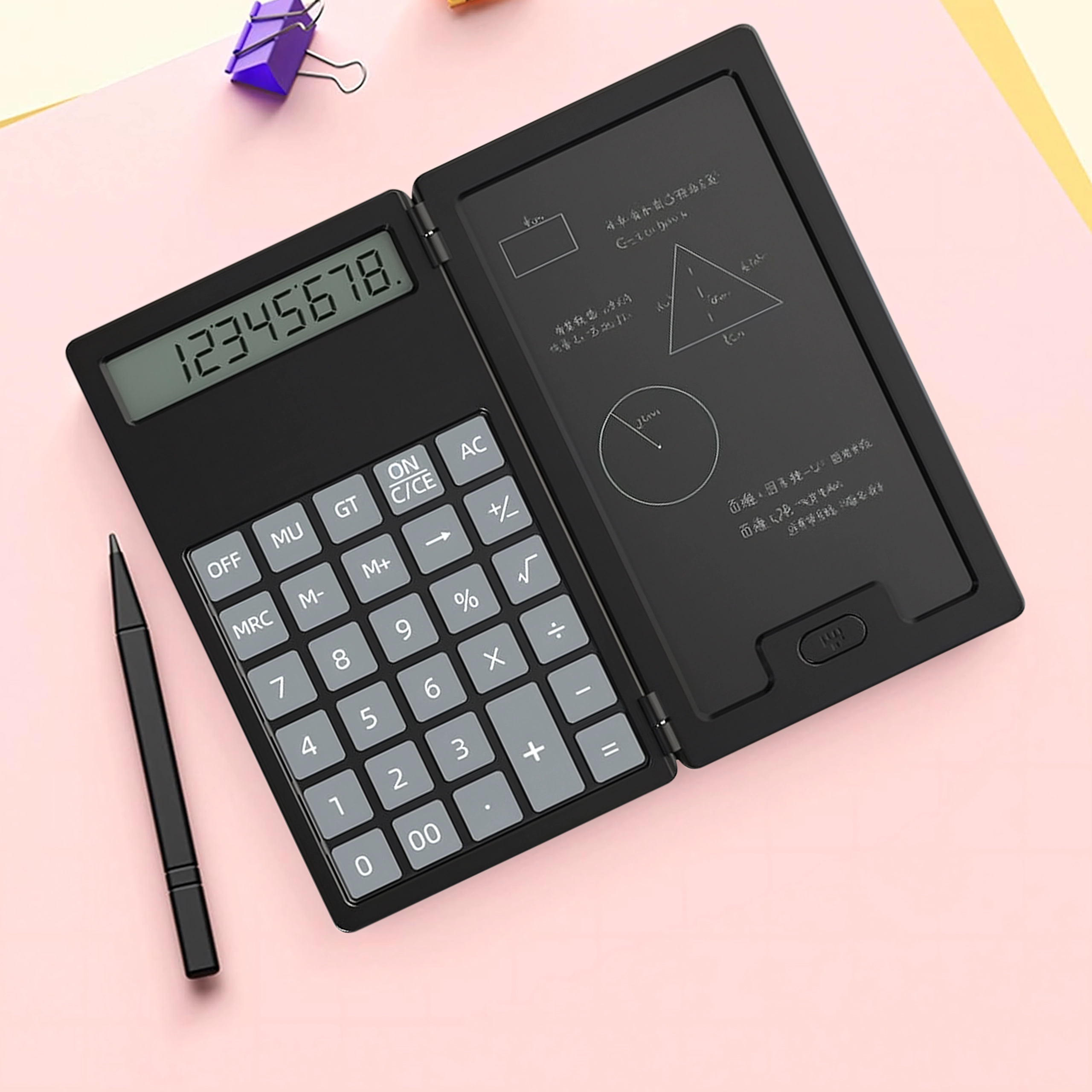 Dispozitiv compact 2 în 1 care îmbină calculatorul științific și caietul LCD. Ideal pentru școală, birou și acasă – calculează, notează și păstrează-ți ideile fără hârtie, rapid și comod, totul într-un singur loc.