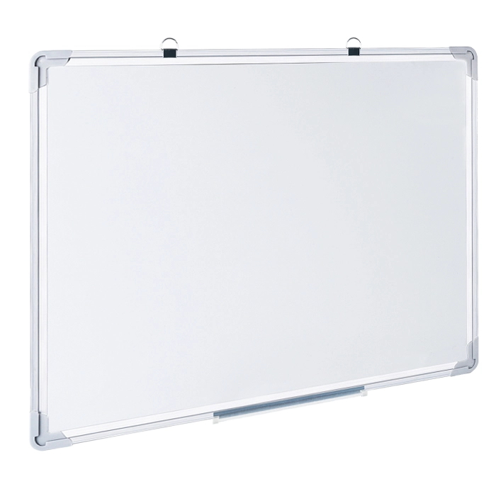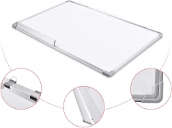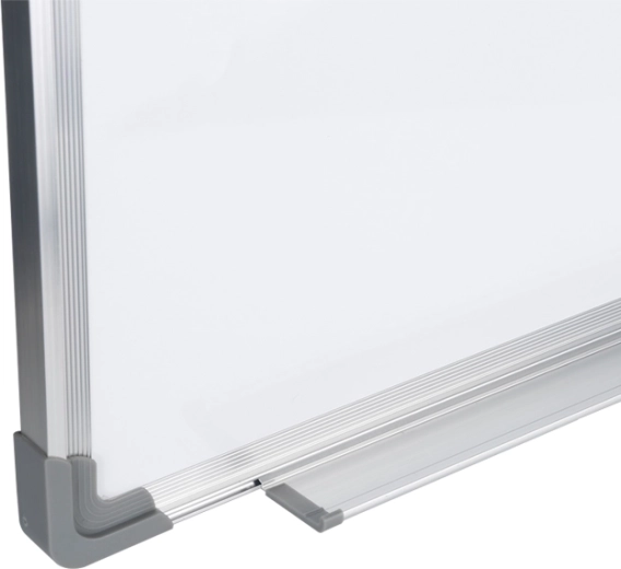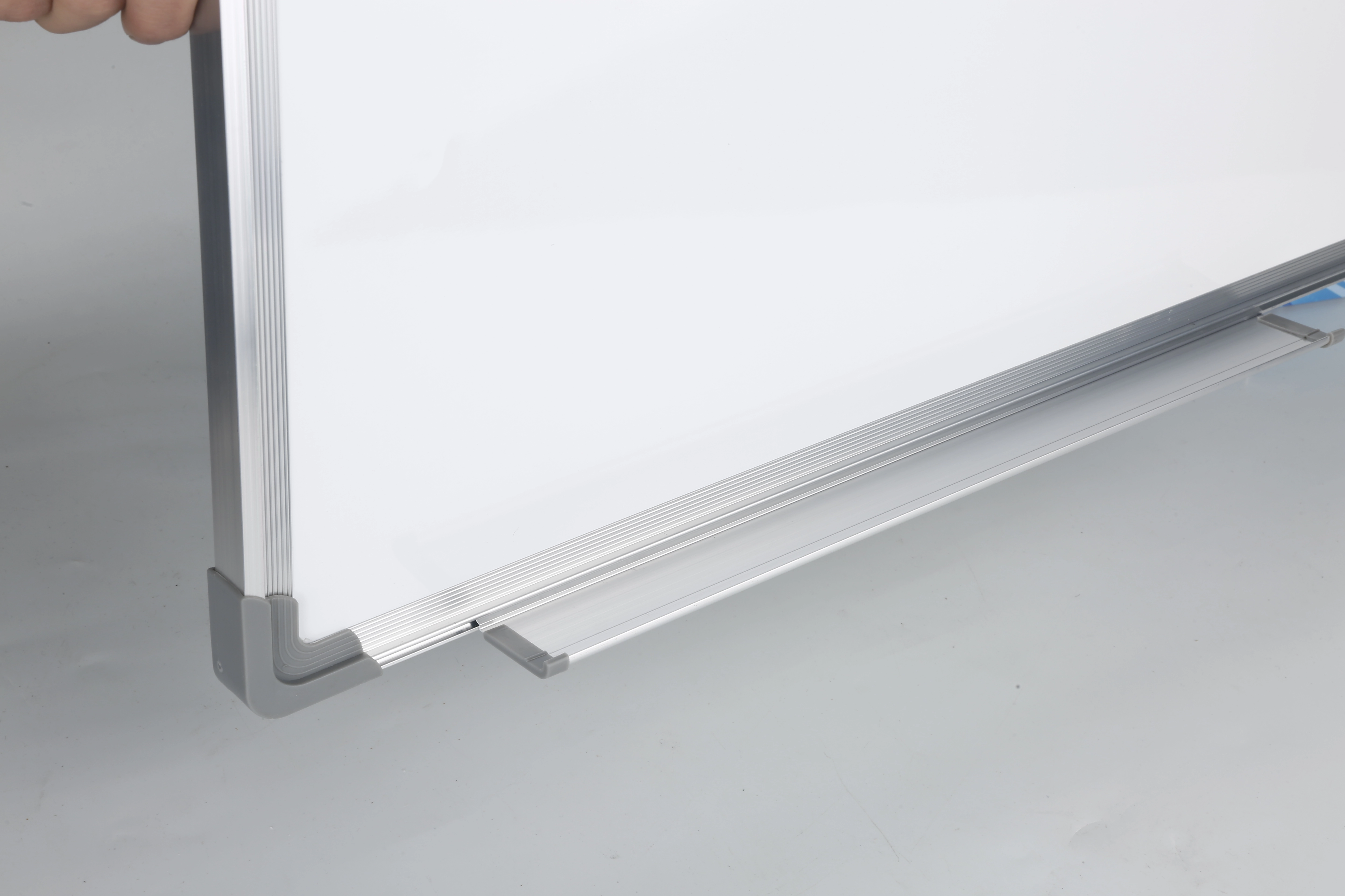 Rama din aluminiu cu protecții pentru colțuri asigură durabilitate și siguranță în utilizarea de zi cu zi. Include tăviță practică pentru markere și accesorii și suporturi de agățare pentru instalare rapidă pe perete, atât pe orizontală, cât și pe verticală.