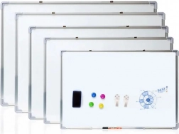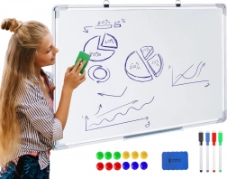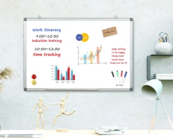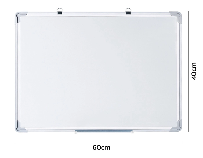 Tablă magnetică compactă 60 × 40 cm, cu ramă din aluminiu, ideală pentru birou, școală și acasă. Oferă suprafață netedă cu ștergere la uscat pentru scriere curată, funcție magnetică pentru prinderea notițelor, tăviță pentru markere și montaj ușor pe perete.