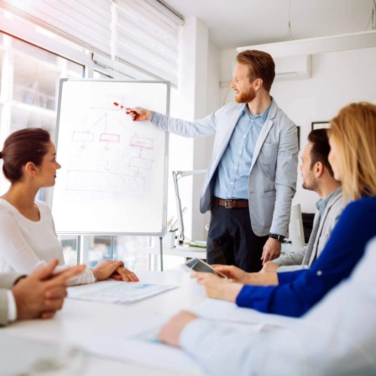 Scrii, ștergi și creezi din nou fără a lăsa urme. Suprafața asigură contrast ridicat și lizibilitatea notițelor și prezentărilor.