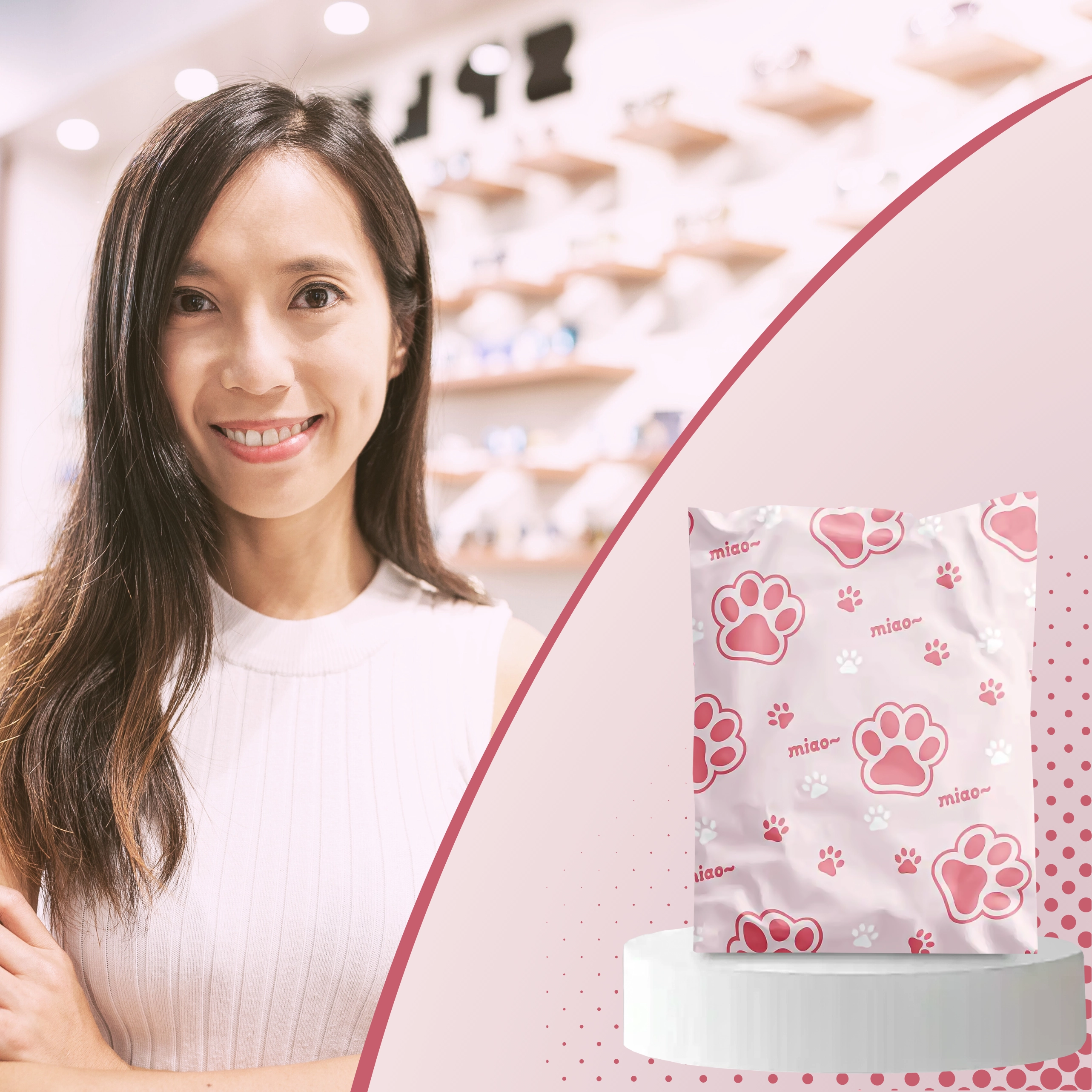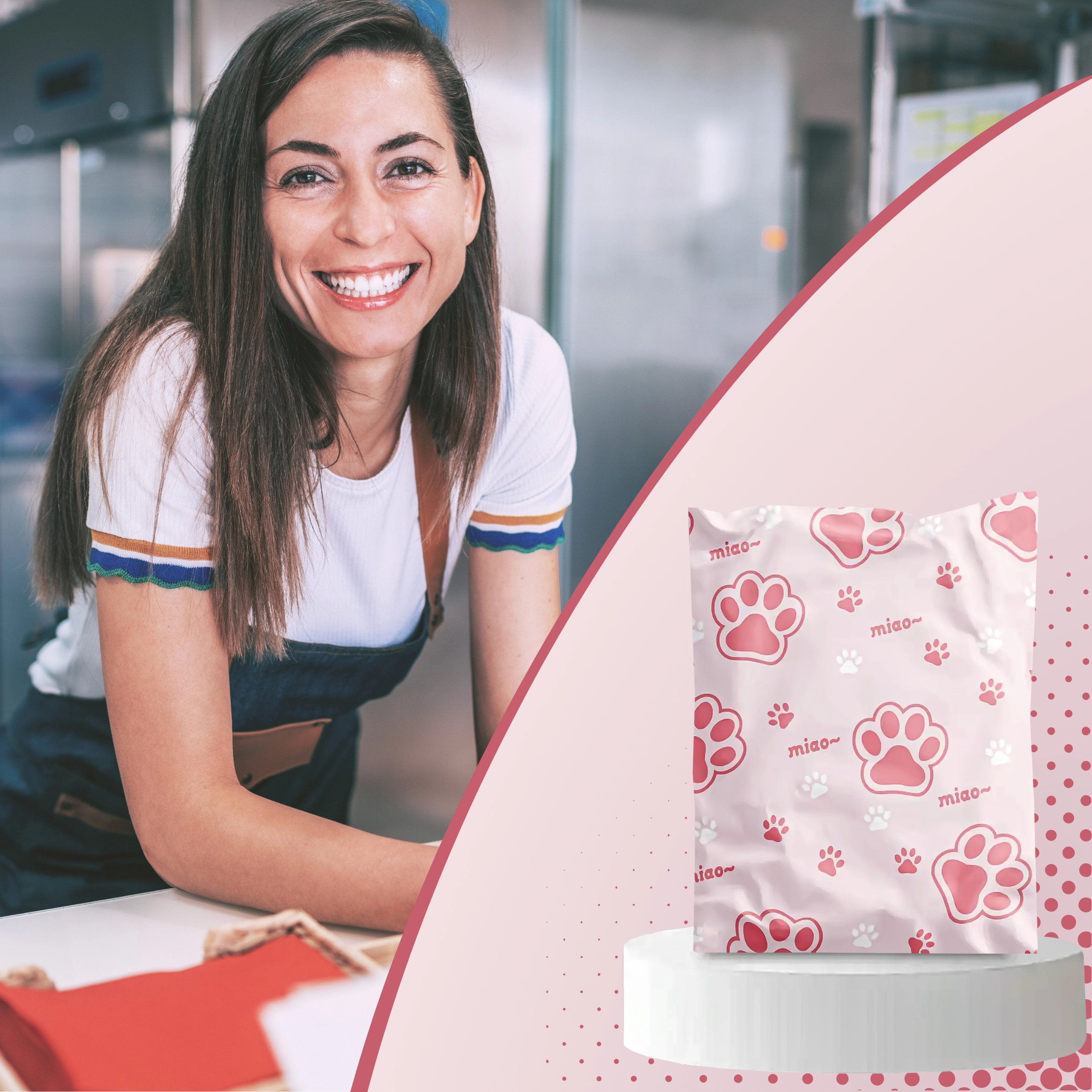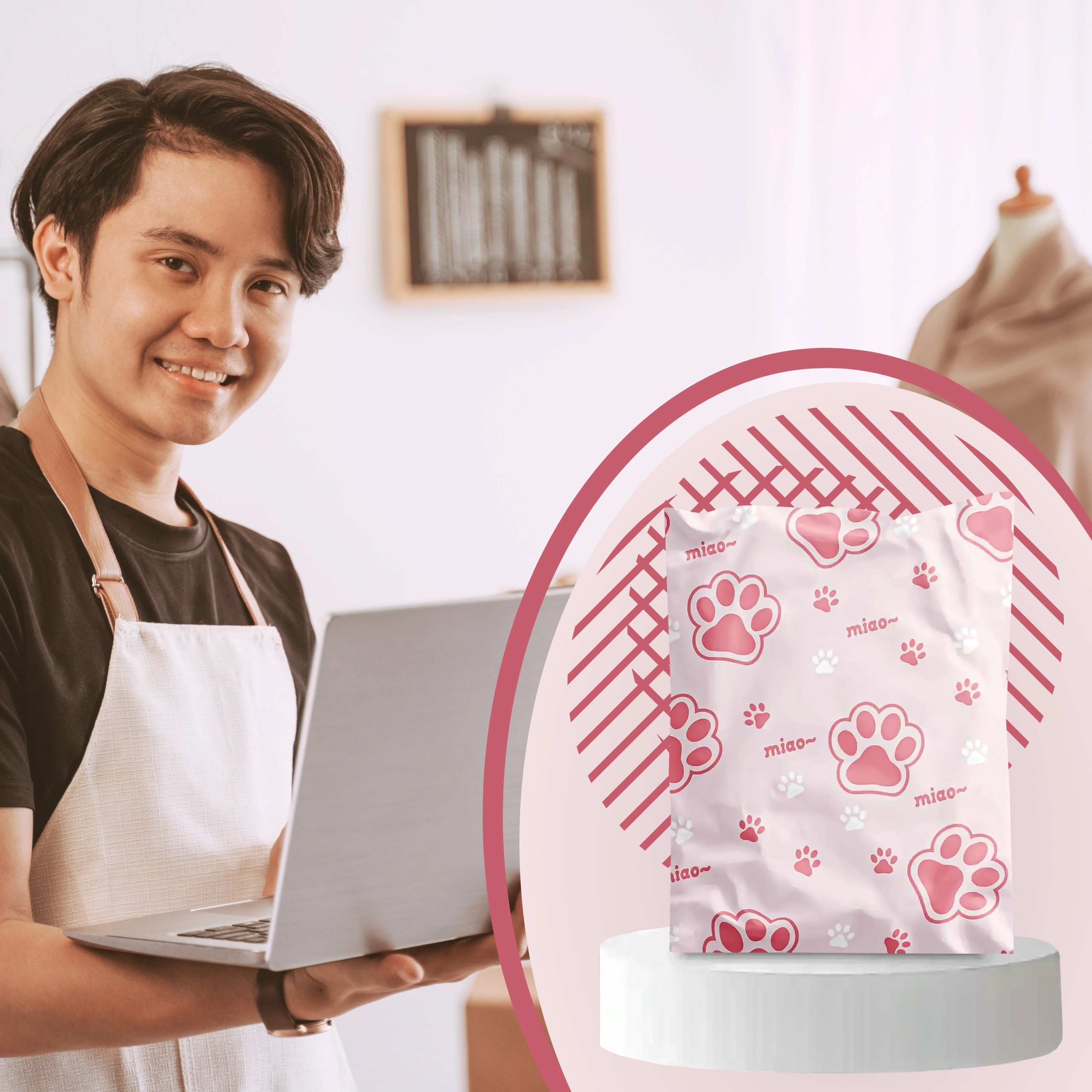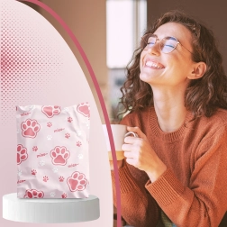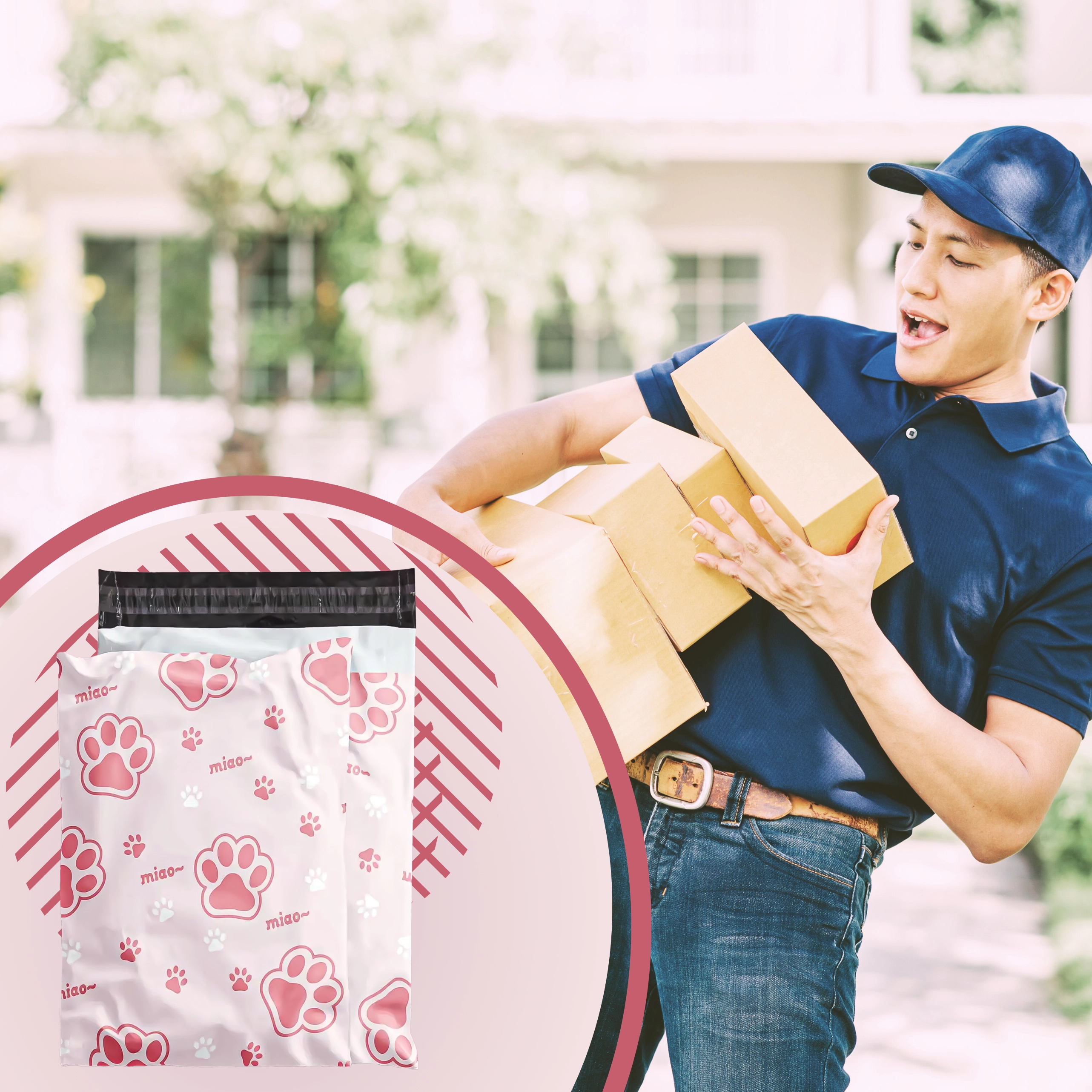 Poly mailere stilate și rezistente cu motiv de urme de pisică simplifică ambalarea comenzilor. Datorită benzii autocolante sigilați coletul în câteva secunde, iar materialul solid și rezistent la apă protejează conținutul în timpul transportului. Dimensiunea 320 × 450 mm este potrivită pentru textile, accesorii, cutii de format mai mic și alte produse.