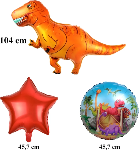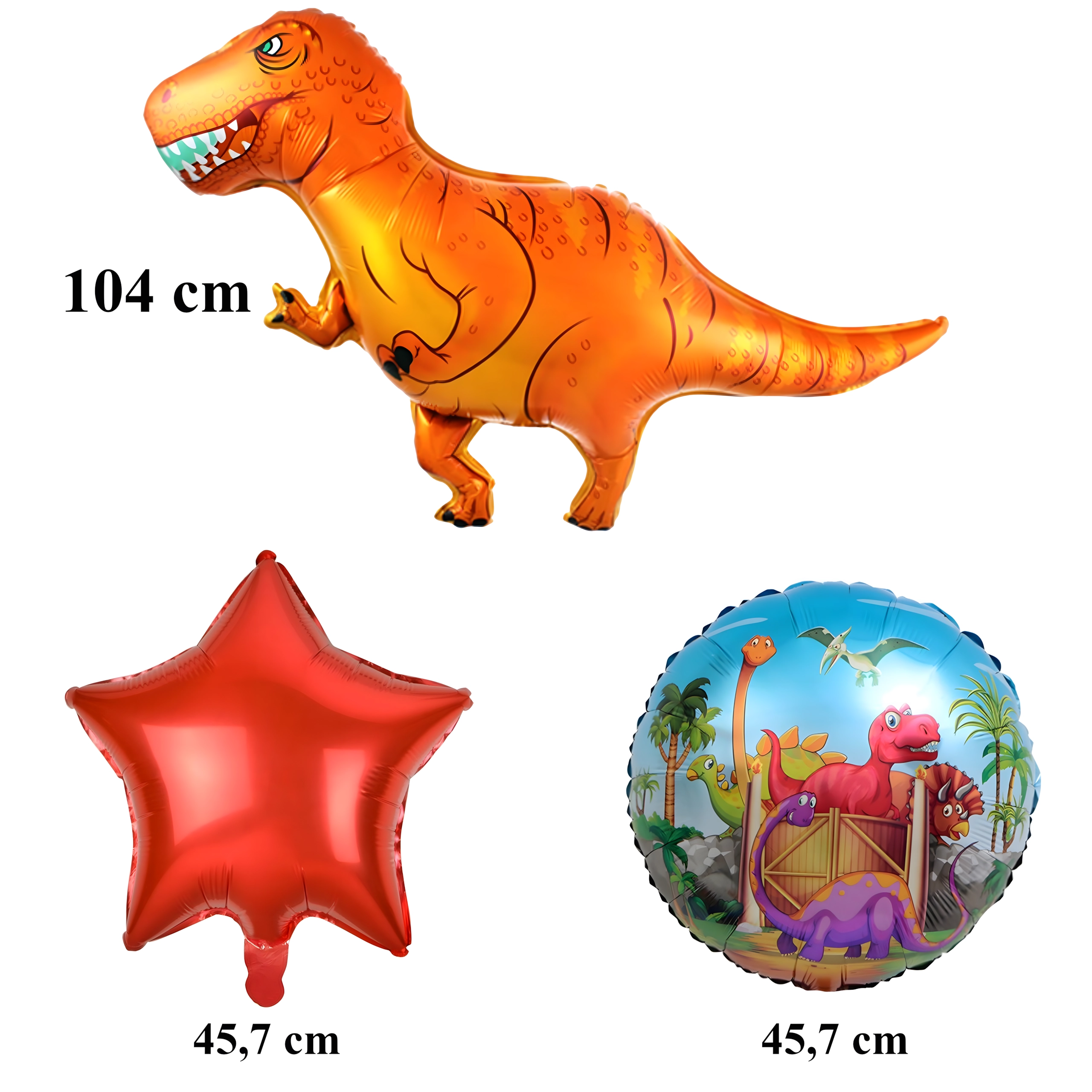 - 1× balon dinozaur, 2× balon imprimat, 2× stea roșie