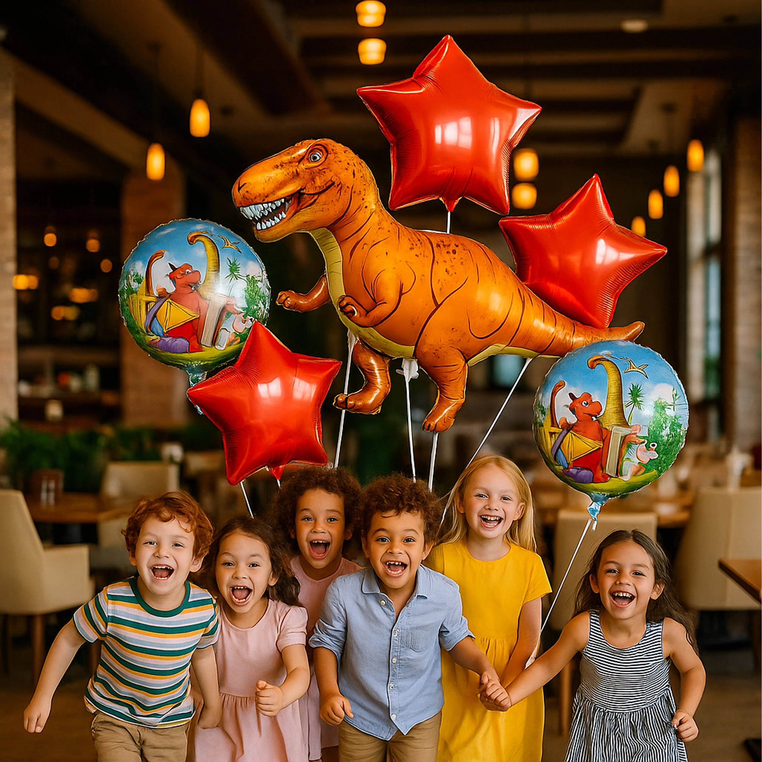 - 1× balon mare în formă de dinozaur – piesa centrală a decorului