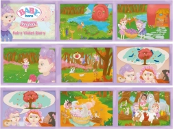 Păpușa BABY born Fialková zână aduce propria lume de poveste cu o scenă interactivă și o carte magică.