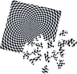 Puzzle-ul pătrat CURIOSI Q Shimmer: Iluzie IV oferă o experiență unică de asamblare într-un format mic. Motivul iluzionist original se remarcă prin culori și contrast, în timp ce piesele cu forme neobișnuite sporesc amuzamentul și dificultatea.