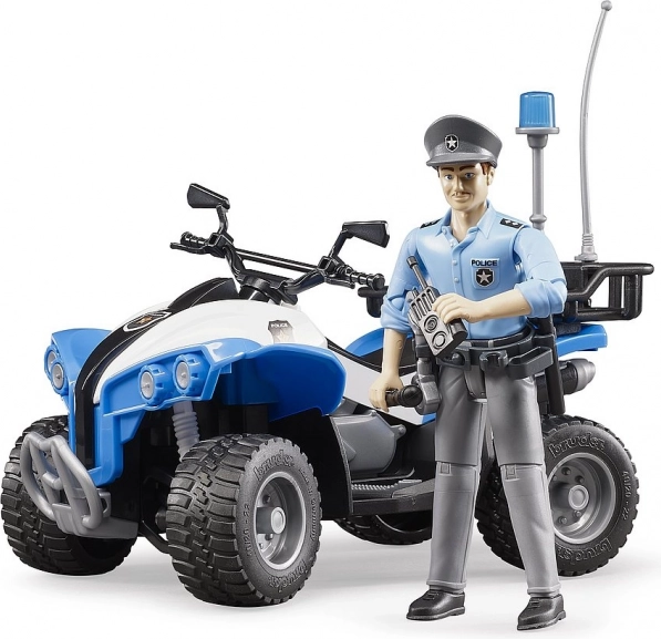 Detaliile unice ale acestui ATV includ emblema poliției, o serie de accesorii de poliție precum șapcă, curea sau pistol și, de asemenea, posibilitatea de a introduce alte figurine BRUDER pe scaun. Totul este realizat din materiale de înaltă calitate, fabricat în Germania.