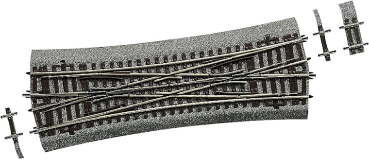 Macazul încrucișat ROCO LINE DKW15 cu terasament combină două linii drepte G1 (lungime 230 mm) care formează un unghi de 15°, cu raza de abatere de 1050 mm. Reproduce construcția Bäsler cu ace exterioare și, datorită polarizării complete, asigură un parcurs fluent chiar și la viteze reduse.