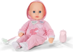 Păpușa adorabilă BABY born Hannah cu înălțimea de 36 cm este partenera ideală pentru joaca și alintul de zi cu zi. Oferă un corp textil moale, sunete realiste de bebeluș, poate bea din biberon cu sunete de băut, închide ochii și, la culcare, redă sunete blânde și liniștitoare. În pachet sunt incluse suzeta și biberonul.